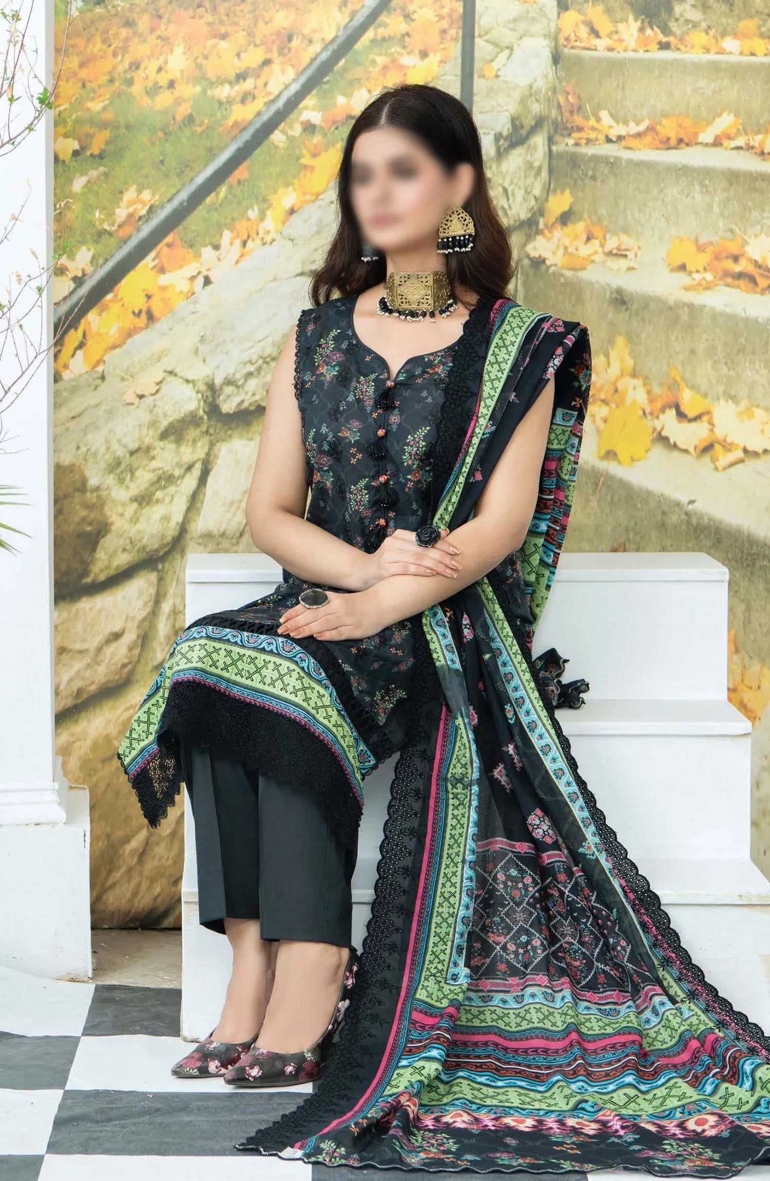 Mashaal Exclusive Digital Printed Collection By Riaz Arts has been styled in the image for photography and illustrative purposes.