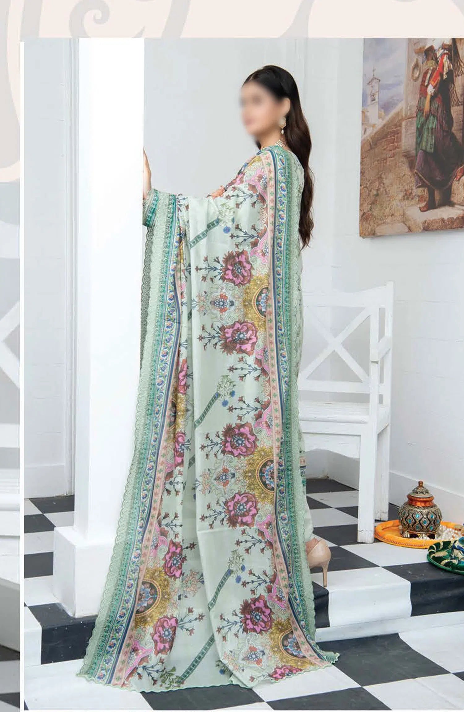 3 Piece Exclusive digital multi allover embroidered lawn with special digital embroidered voile dupatta.