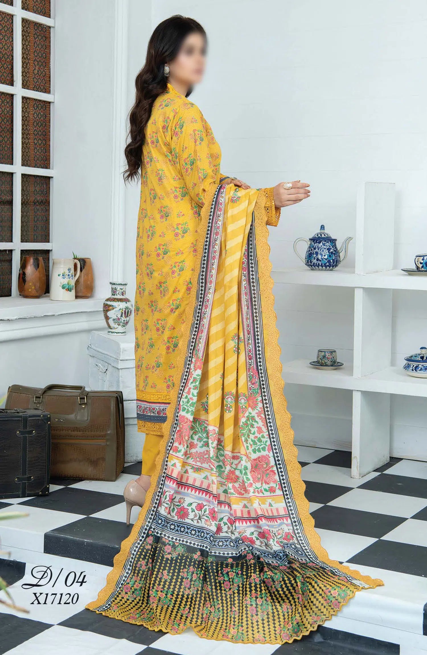 3 Piece Exclusive digital multi allover embroidered lawn with special digital embroidered voile dupatta.