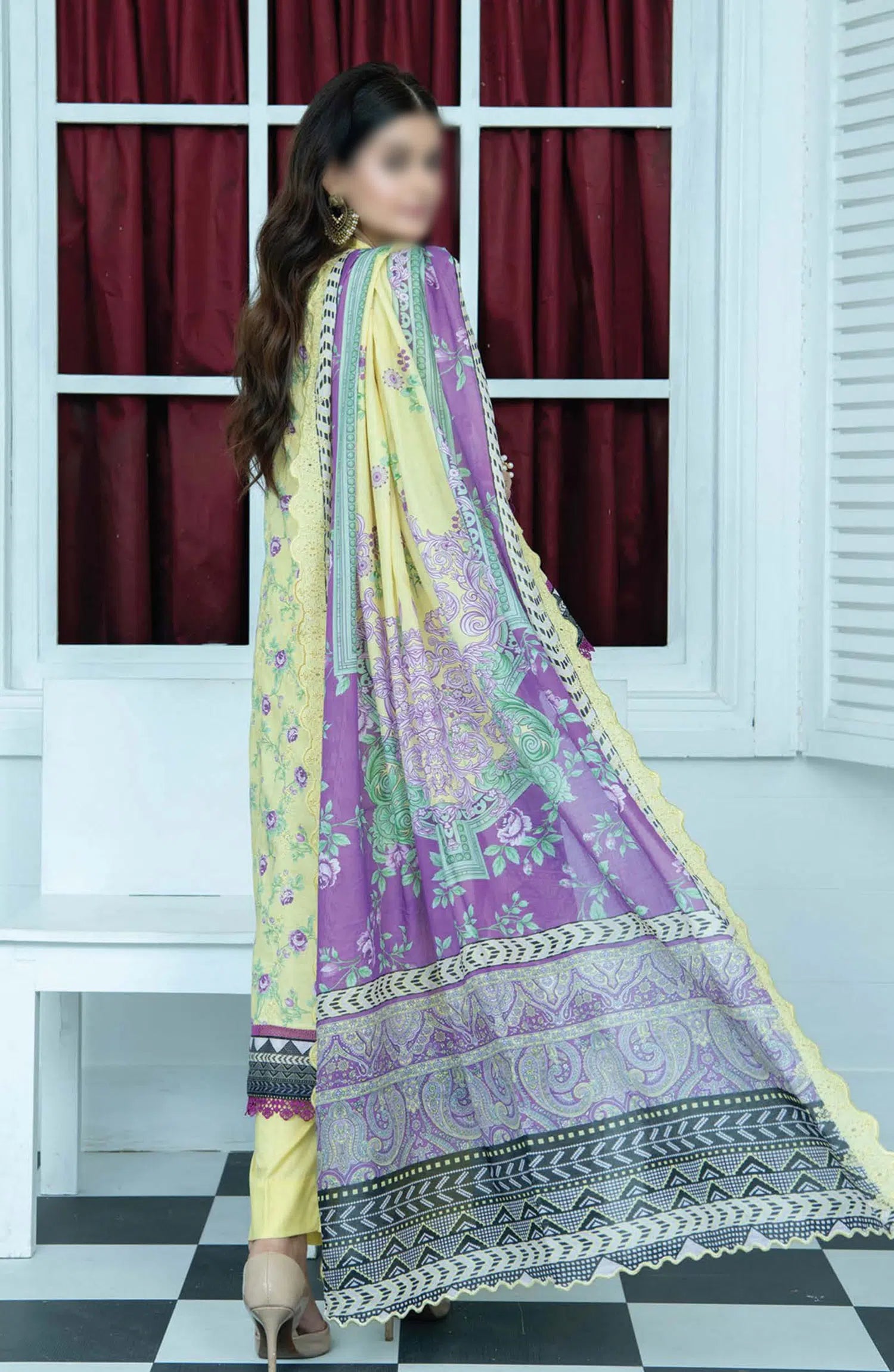 3 Piece Exclusive digital multi allover embroidered lawn with special digital embroidered voile dupatta.