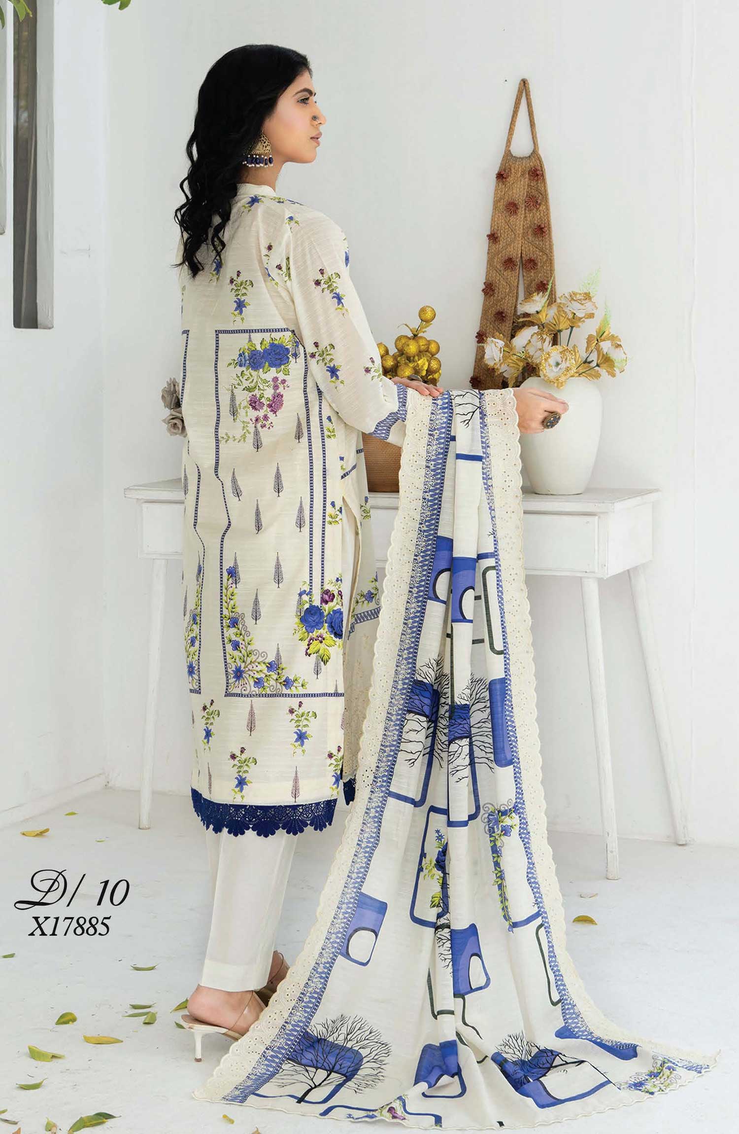 Mashaal Stripe by Riaz Arts Embroidered Lawn Unstitched 3 Piece - D-10 - RA25MSE - White - Summer Collection