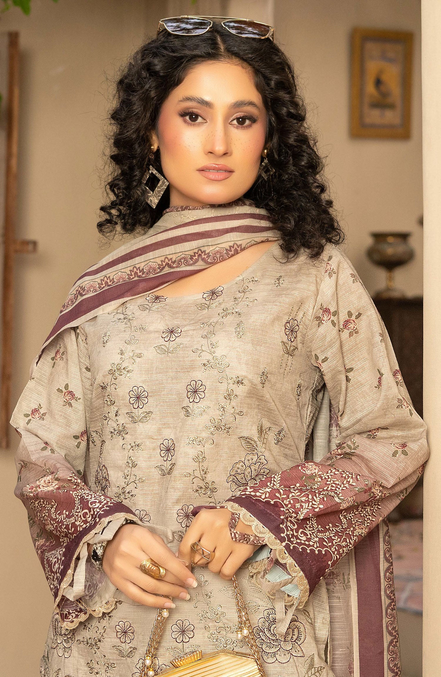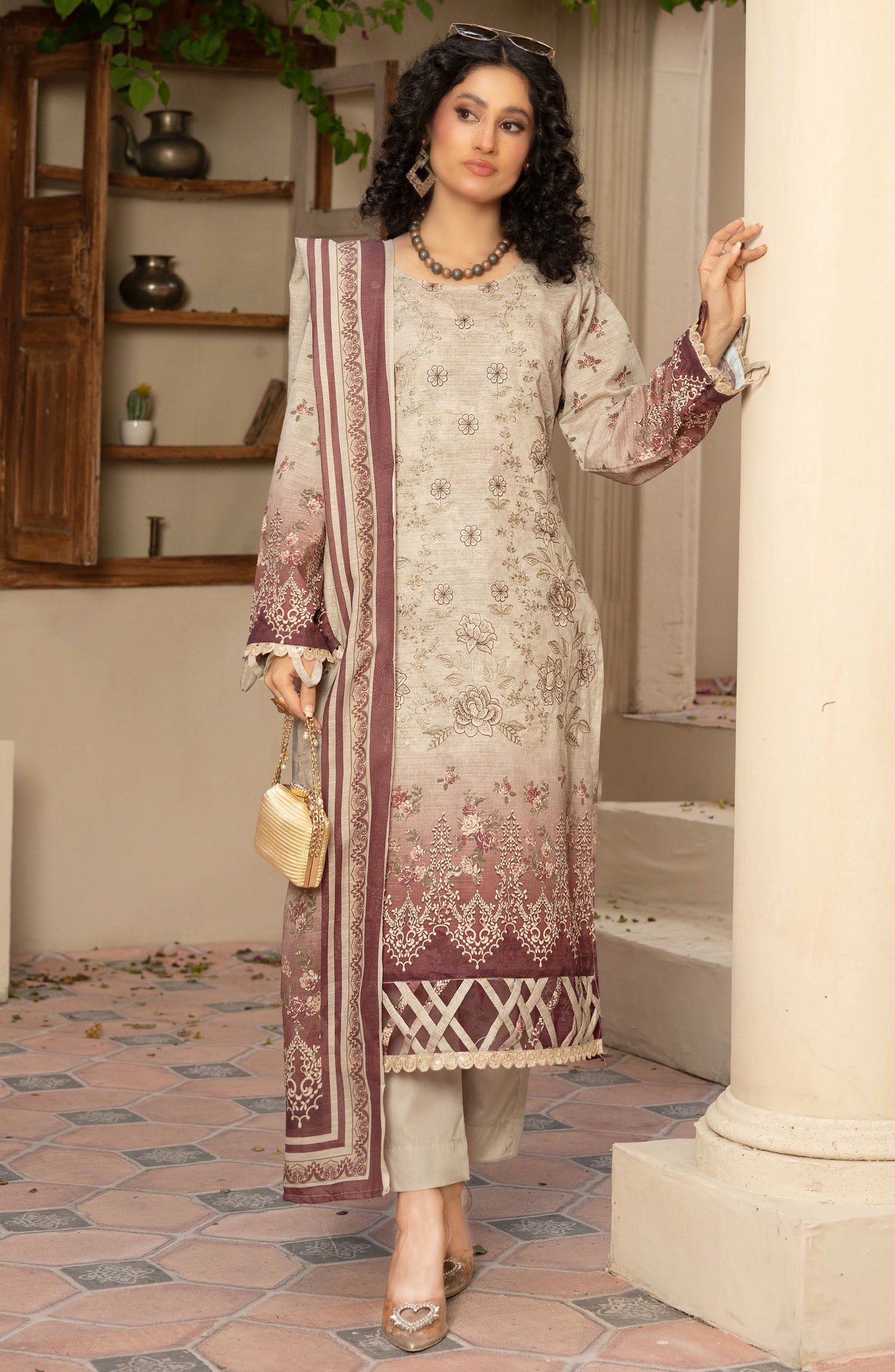 Home Masooma by Amna Khadija Embroidered Bana Dora Unstitched 3 Piece Suit - D-5 - AM25M514 - Beige - Summer Collection