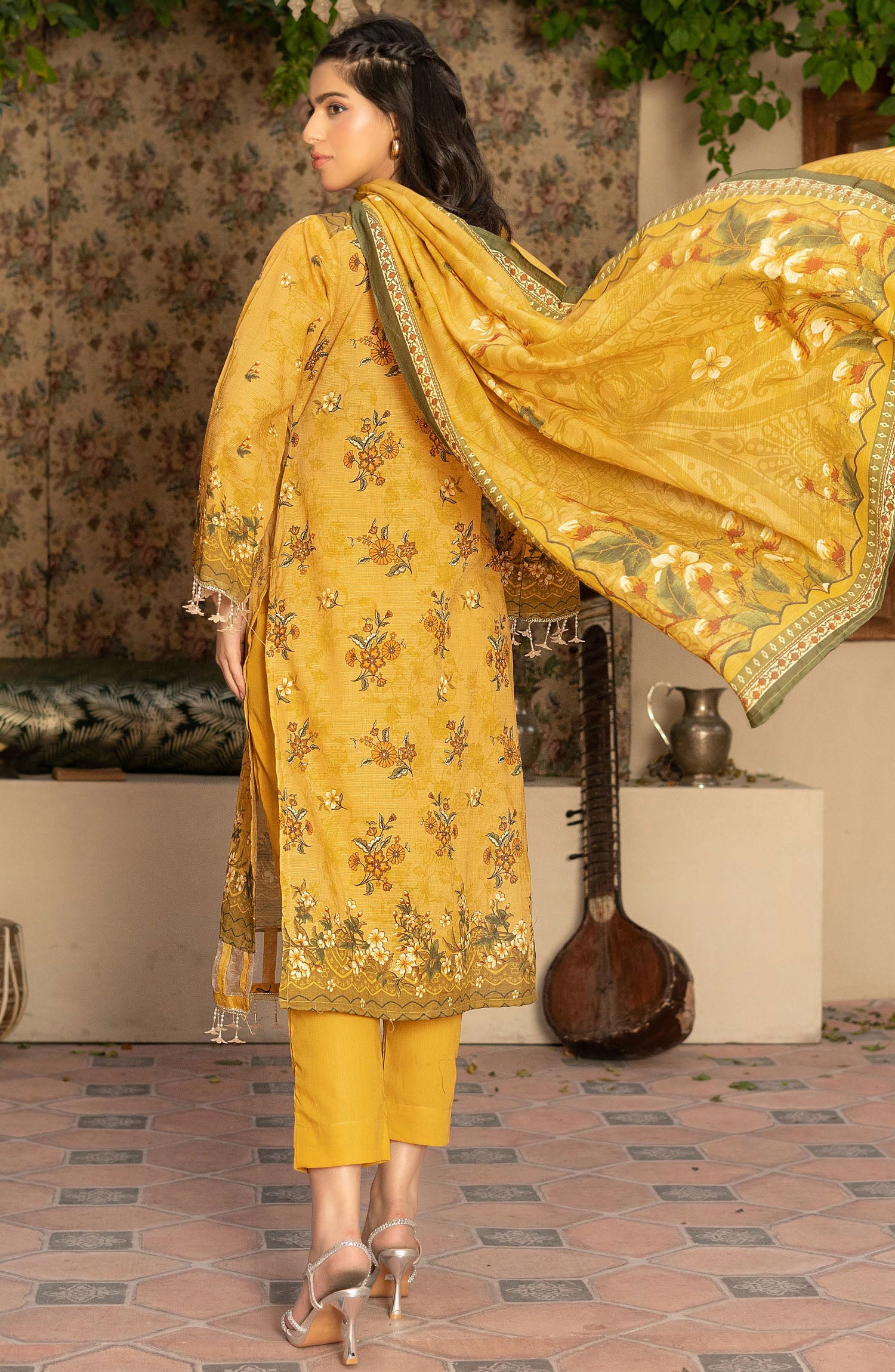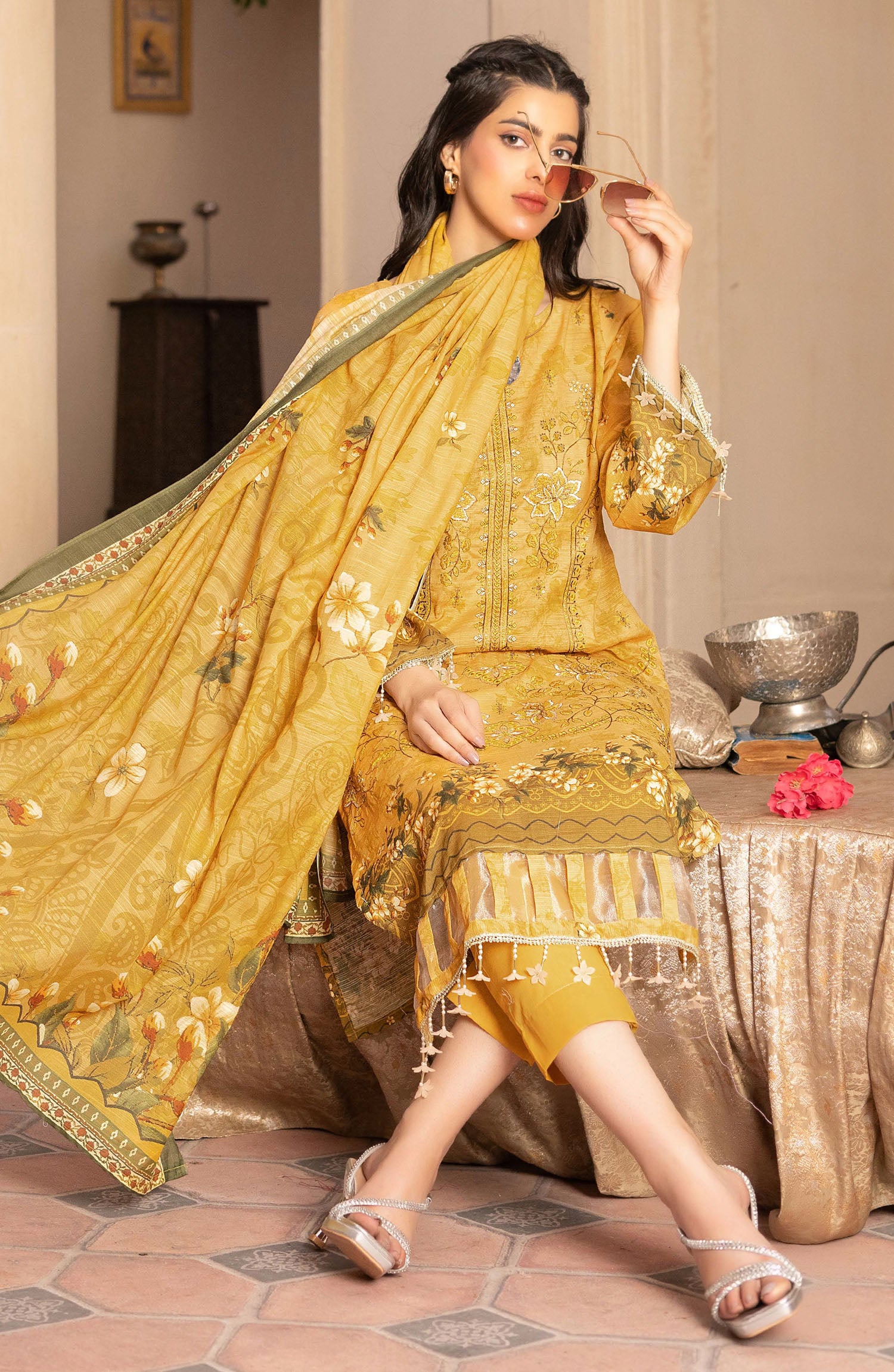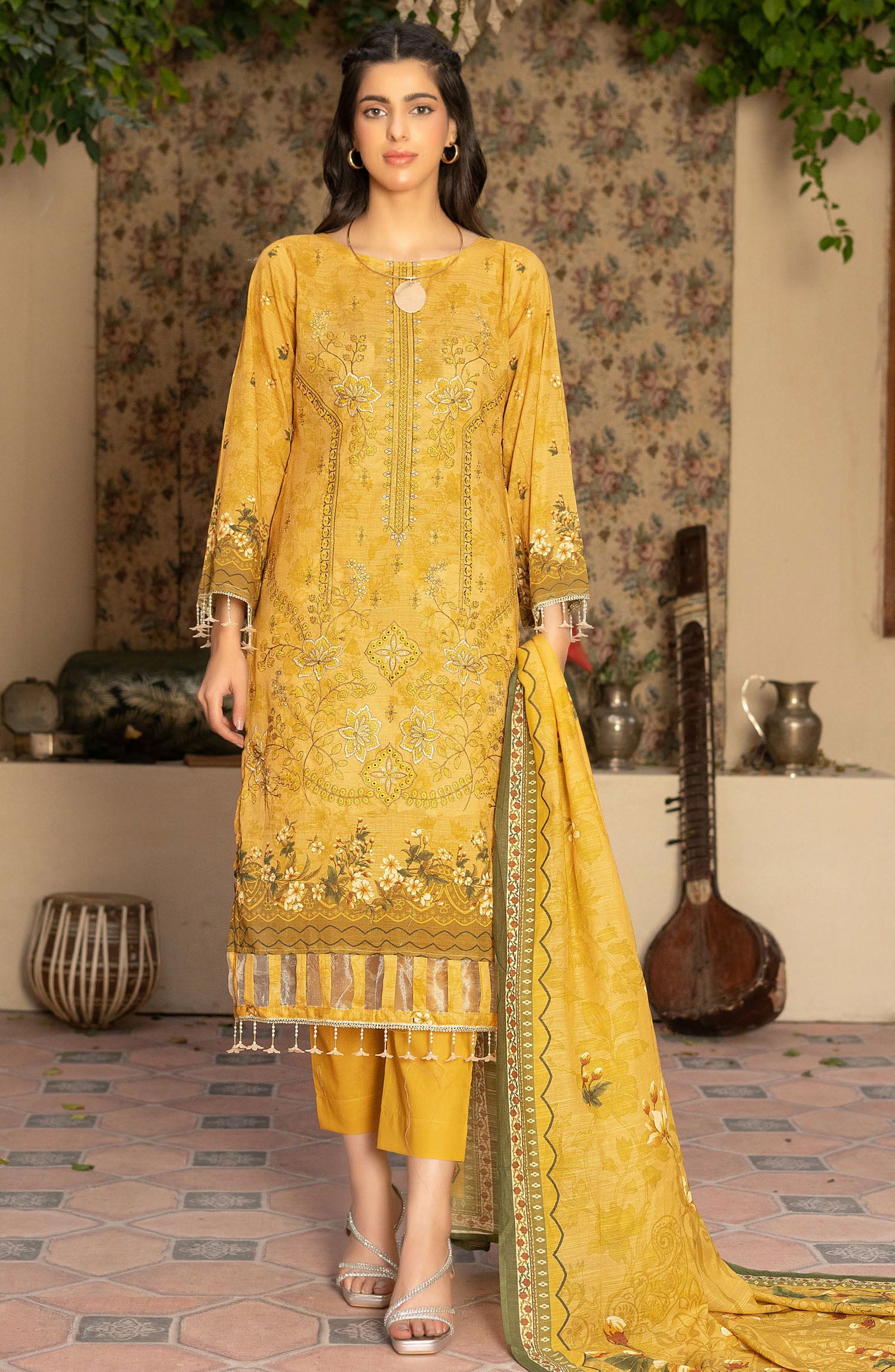 Home Masooma by Amna Khadija Embroidered Bana Dora Unstitched 3 Piece Suit - D-6 - AM25M514 - Mustard - Summer Collection