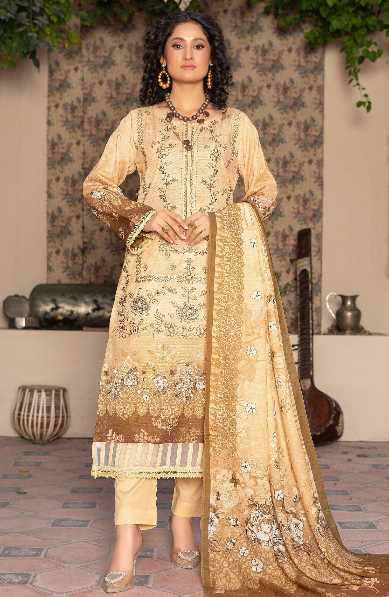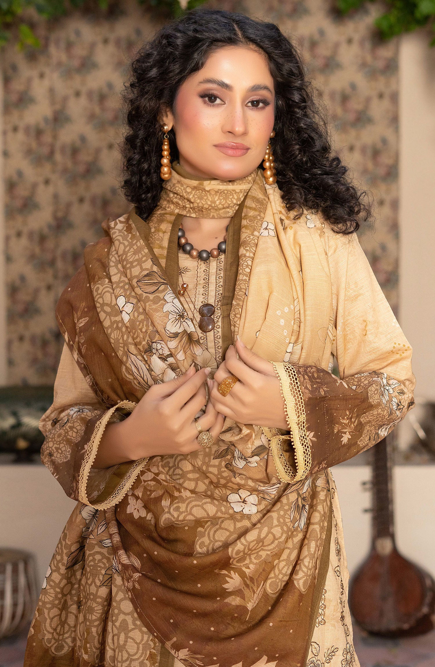 Home Masooma by Amna Khadija Embroidered Bana Dora Unstitched 3 Piece Suit - D-7 - AM25M514 - Beige - Summer Collection
