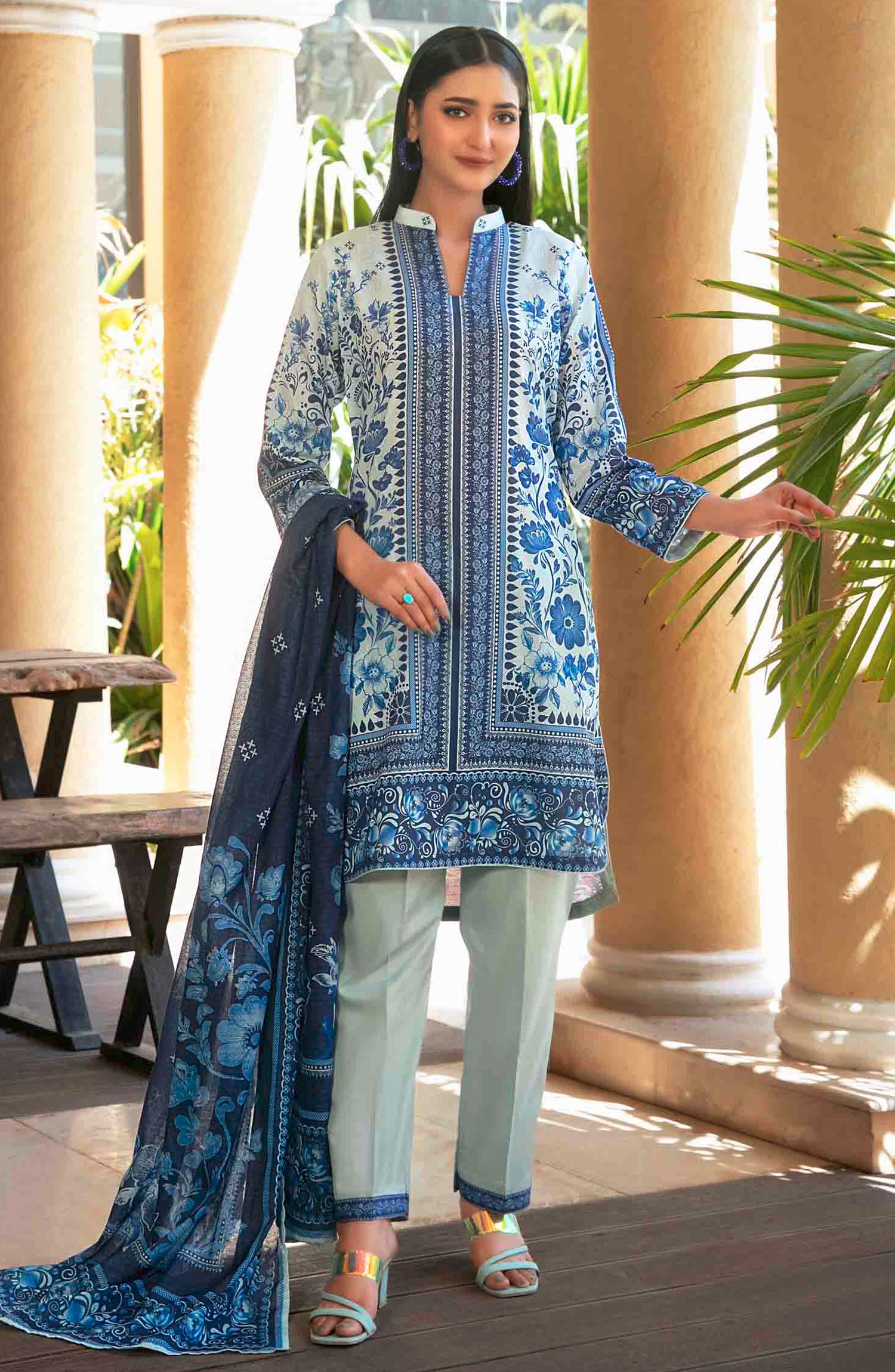 Sadabahar Festive Embroidered Viscose Stitched 3 Piece Suit - Design-03 - SBD25VSC - Ice Blue - Winter Collection