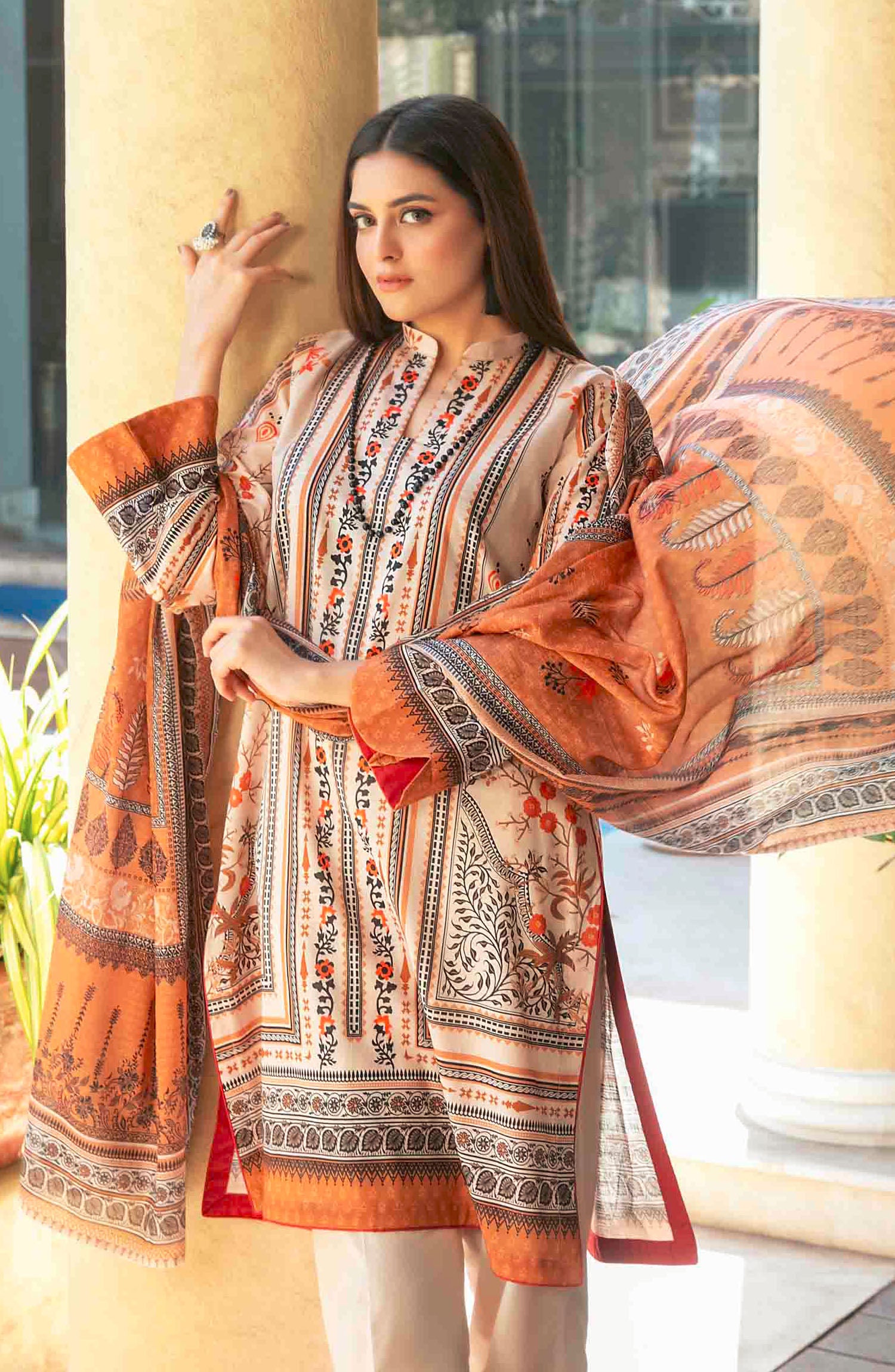 Home Masooma by Tawakkal Fabrics Printed Lawn Unstitched 3 Piece Suit - D-1503 - TF25ML - Rust - Summer Collection