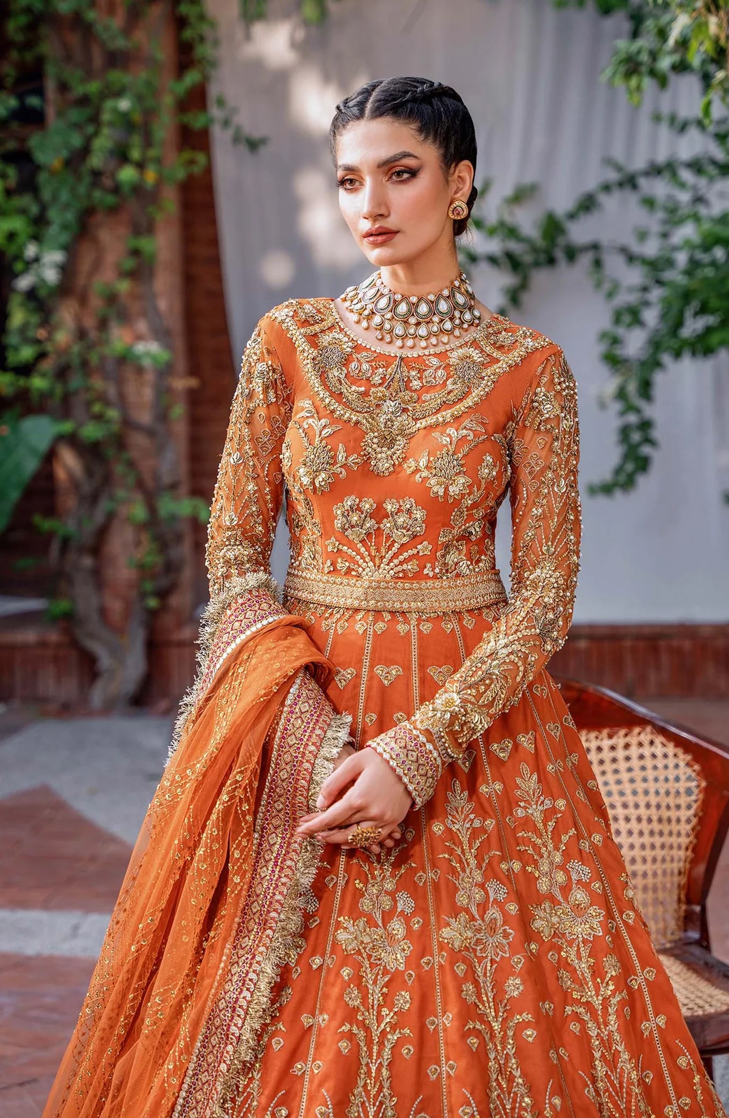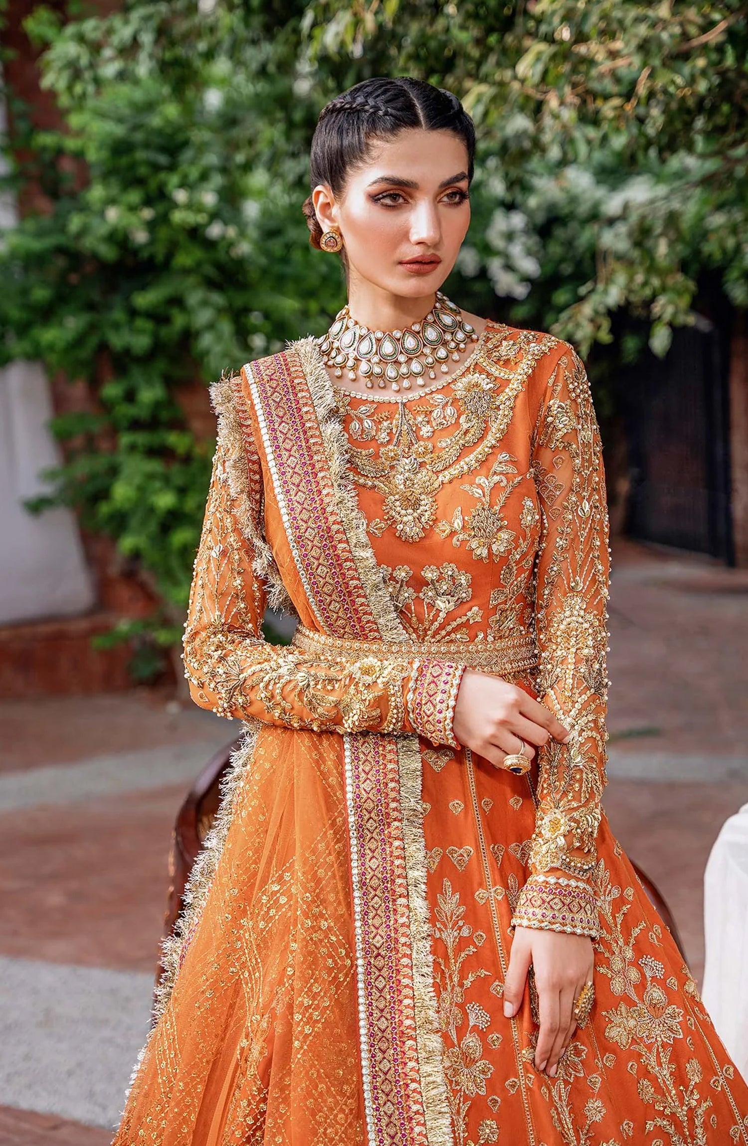Mastani by Akbar Aslam Luxury Formals Embroidered Net Unstitched 3 Piece Suit - Mahjabeen - AKA25MST - Orange - Festive Collection