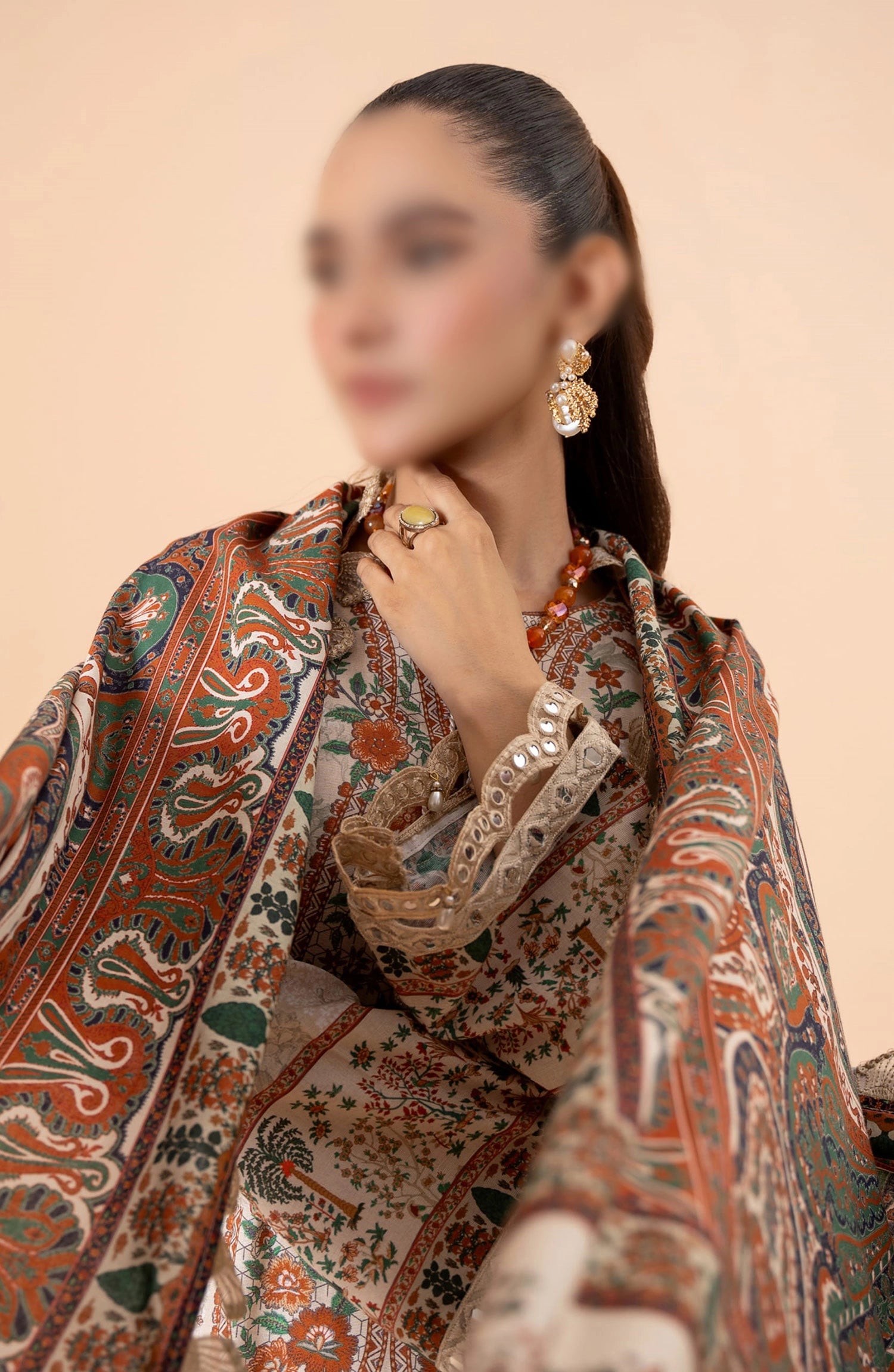 Shafaq by Riaz Arts Luxury Embroidered Peach Leather Unstitched 3 Piece Suit - Design-02 - RA25SHQ - Beige - Winter Collection
