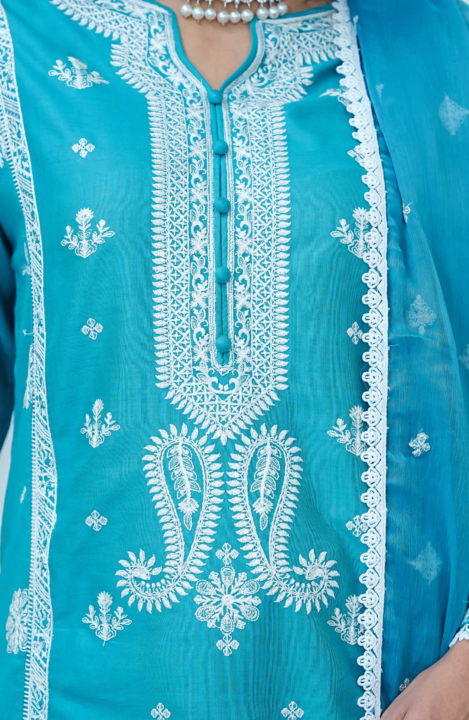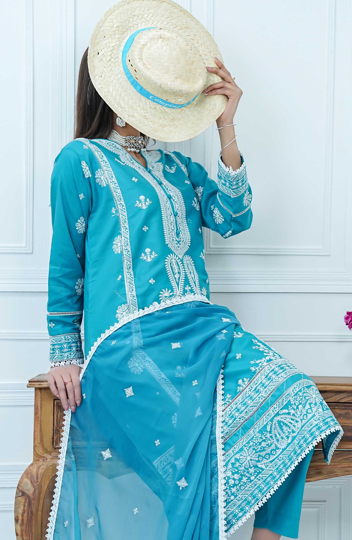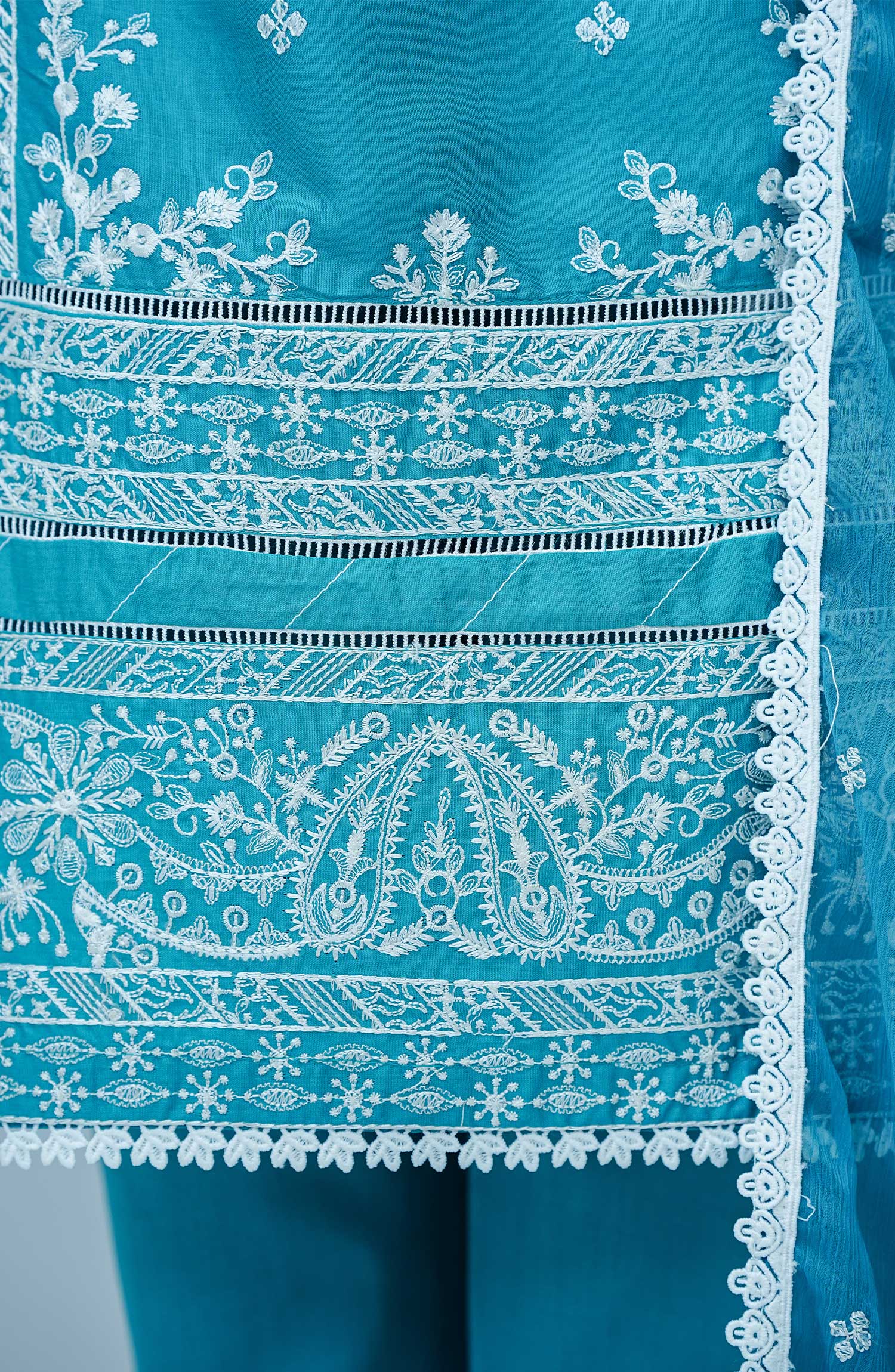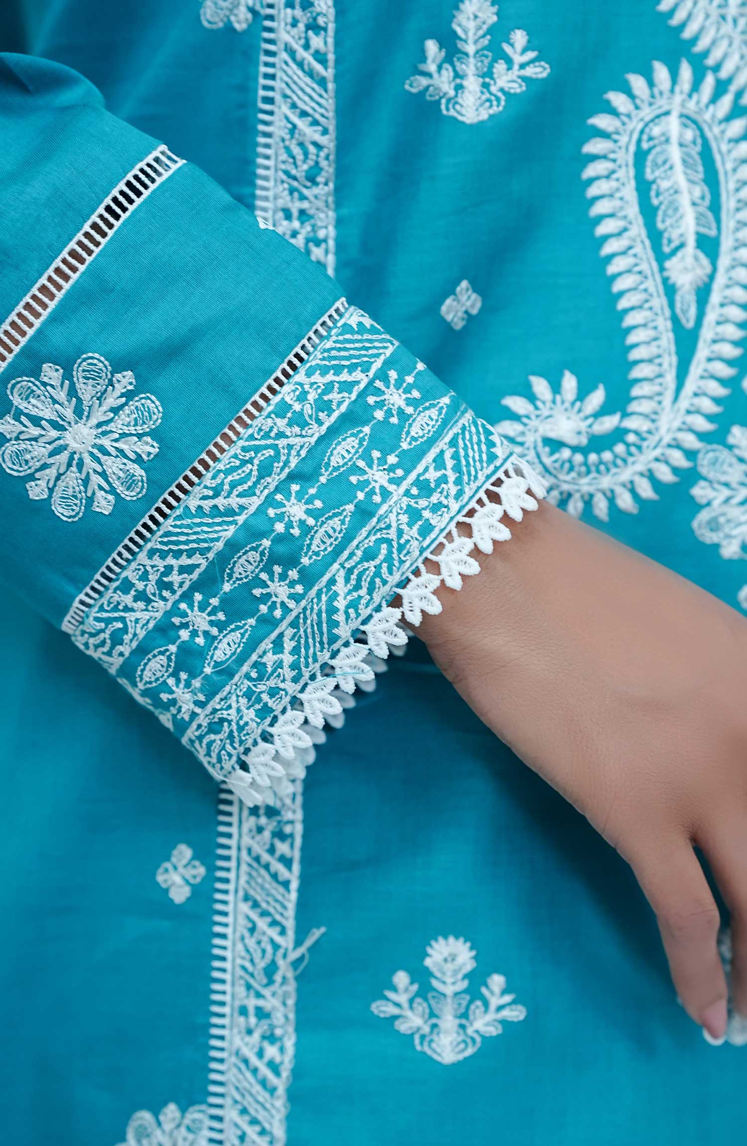 Exclusive Embroidered cambric cotton stitched shirt with lacework