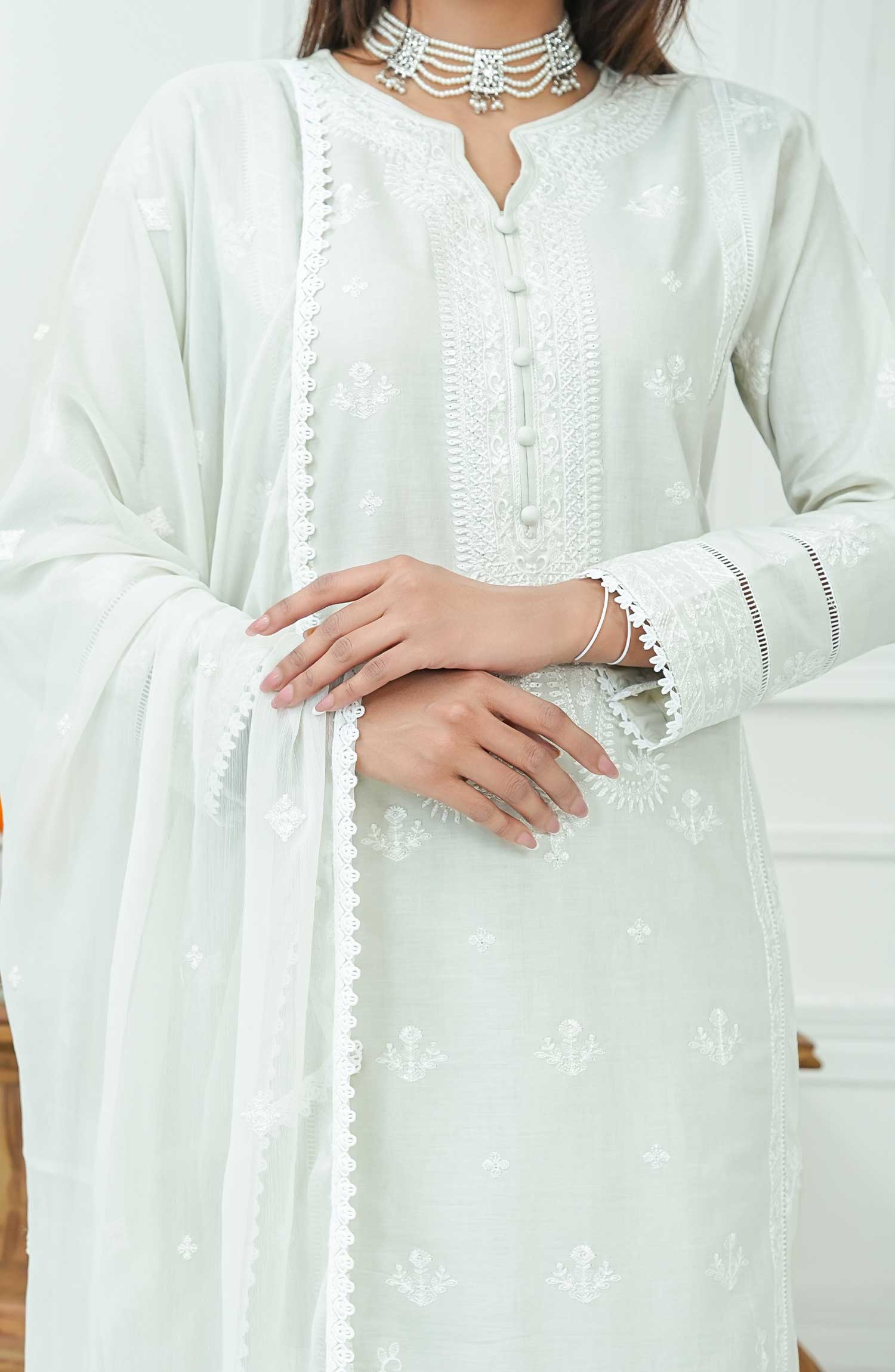 Exclusive Embroidered cambric cotton stitched shirt with lacework