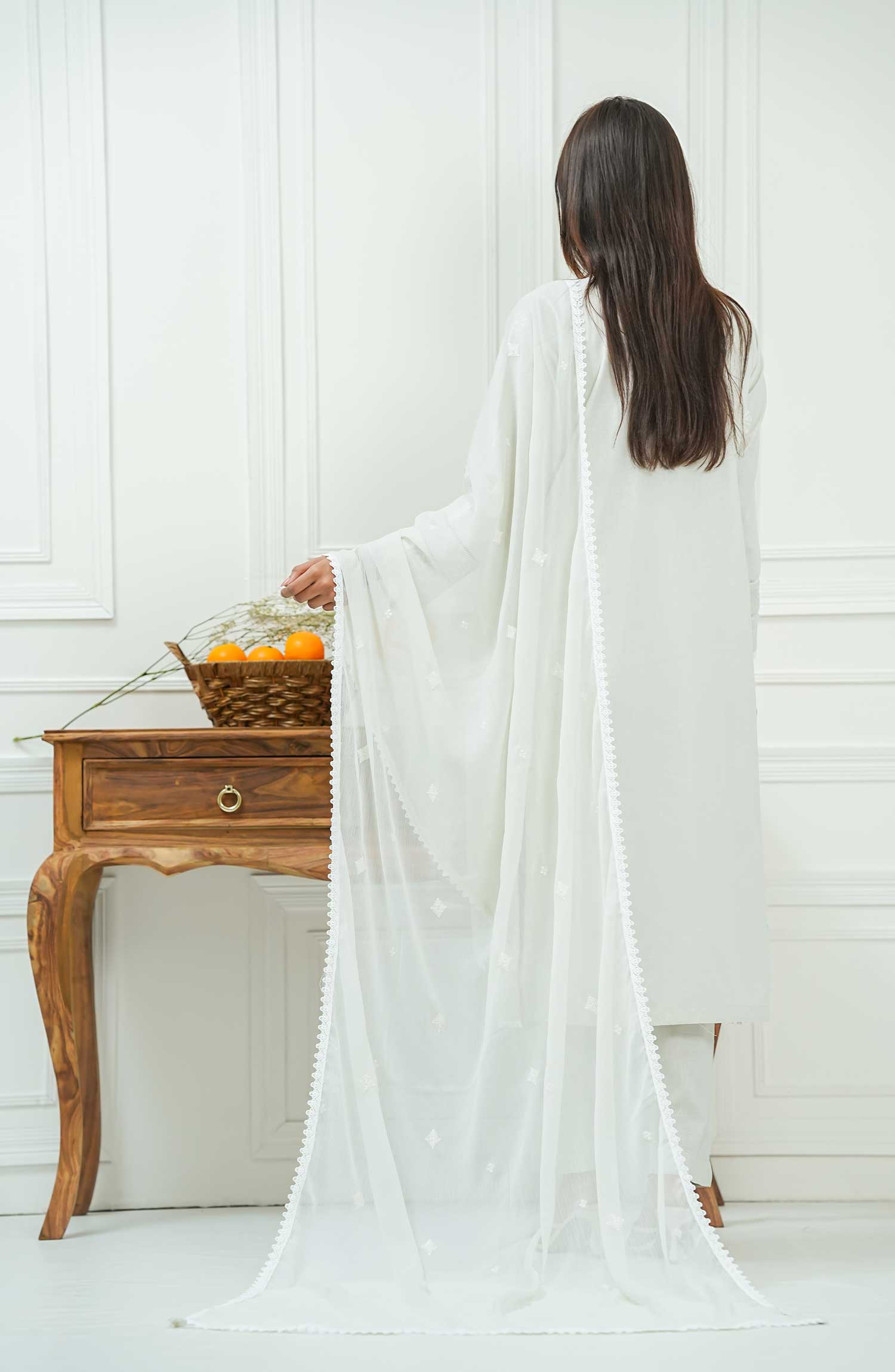 Embroidered Chiffon Dupatta with lace work