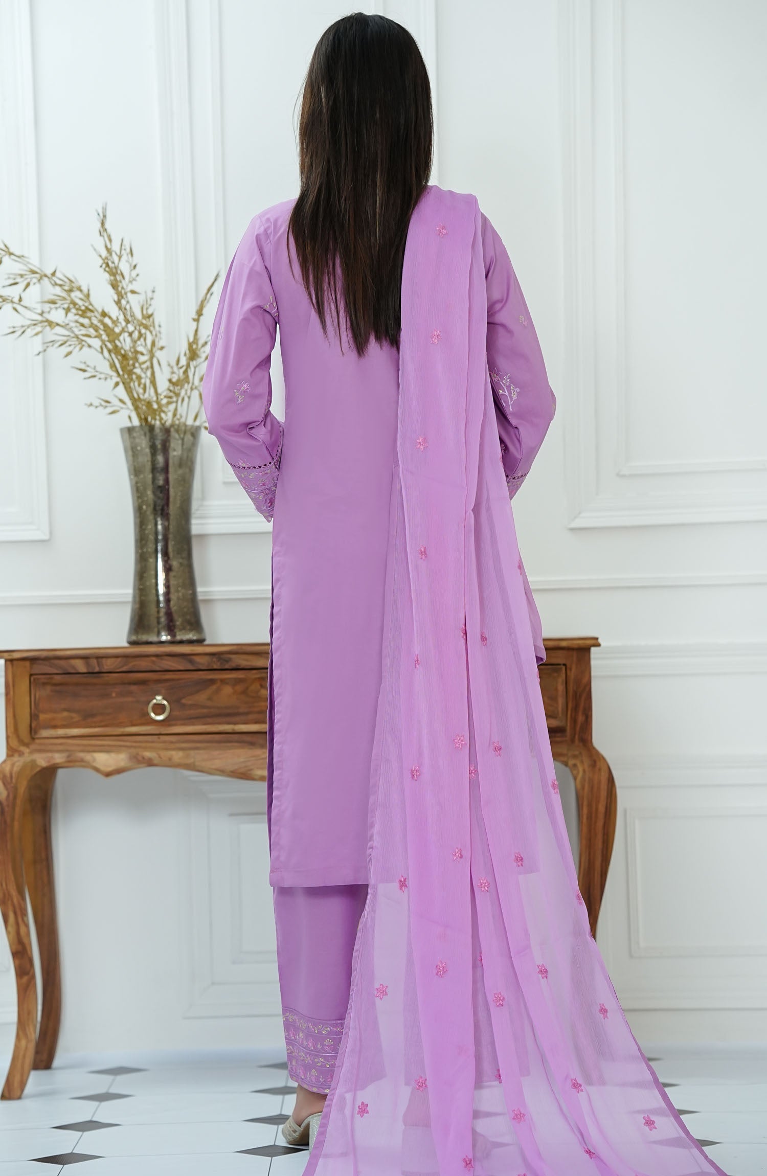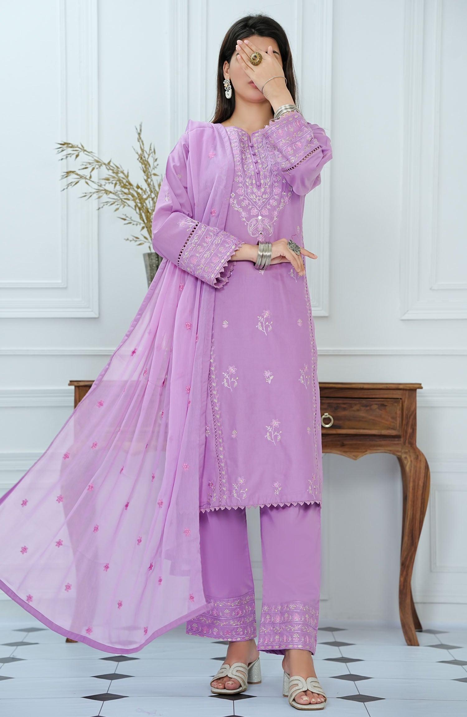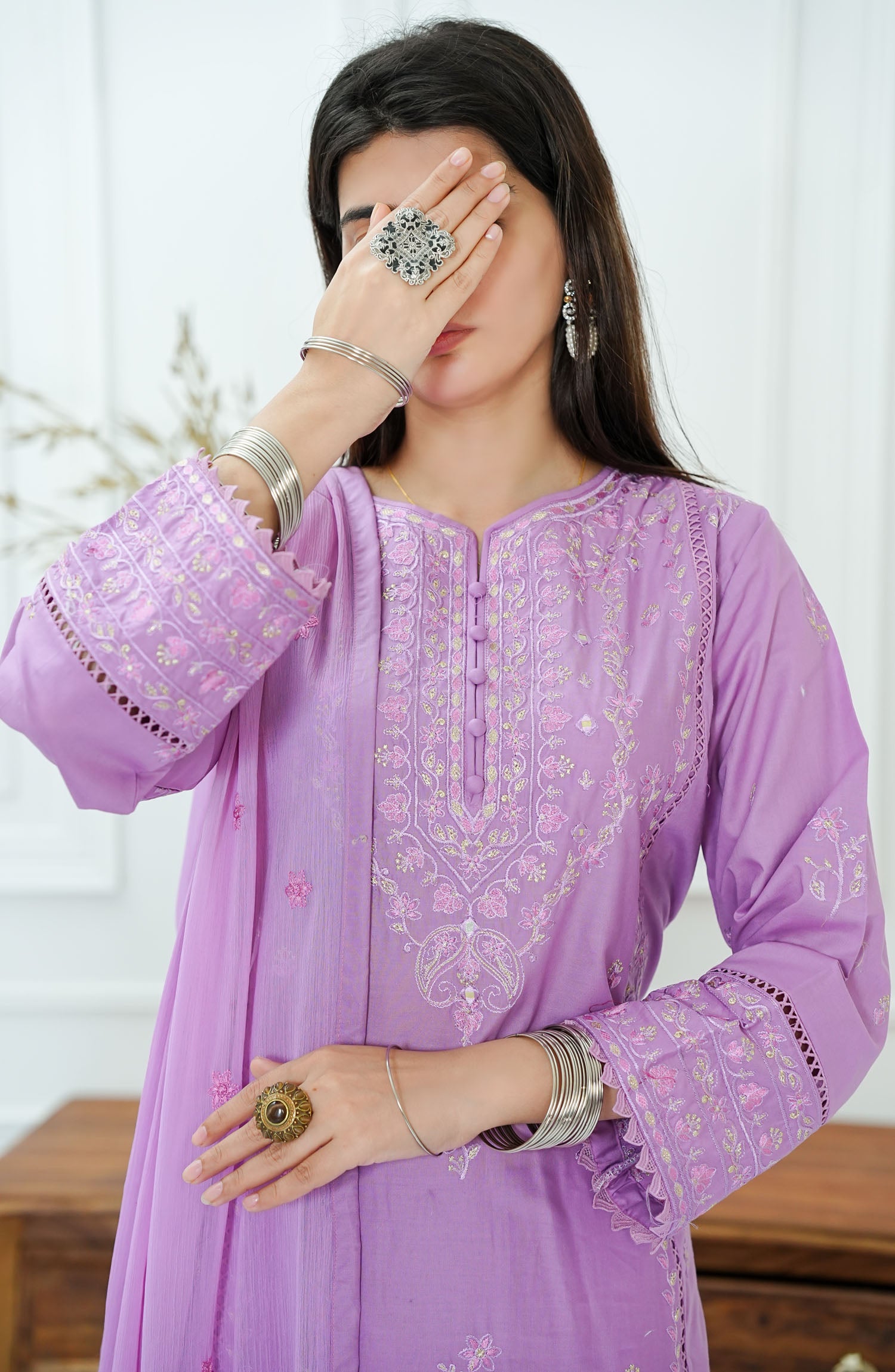 Home Mauve by Amna Khadija Embroidered Lawn Stitched 3 Piece Suit - MLP-10 - AM25MLPD2 - Purple - Summer Collection