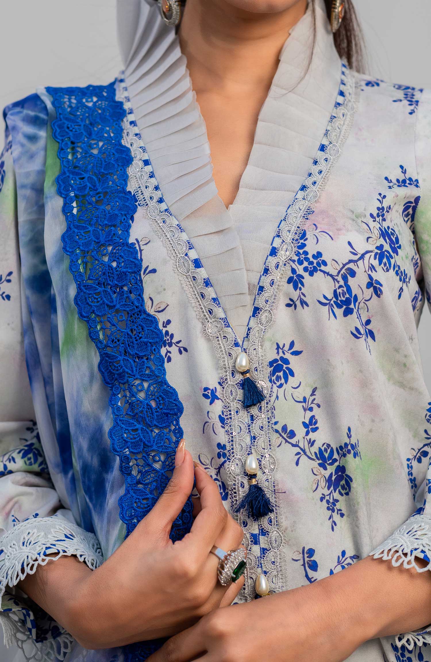Mavi Luxury Unstitched Lawn Collection Vol 02 has been styled in the image for photography and illustrative purposes.