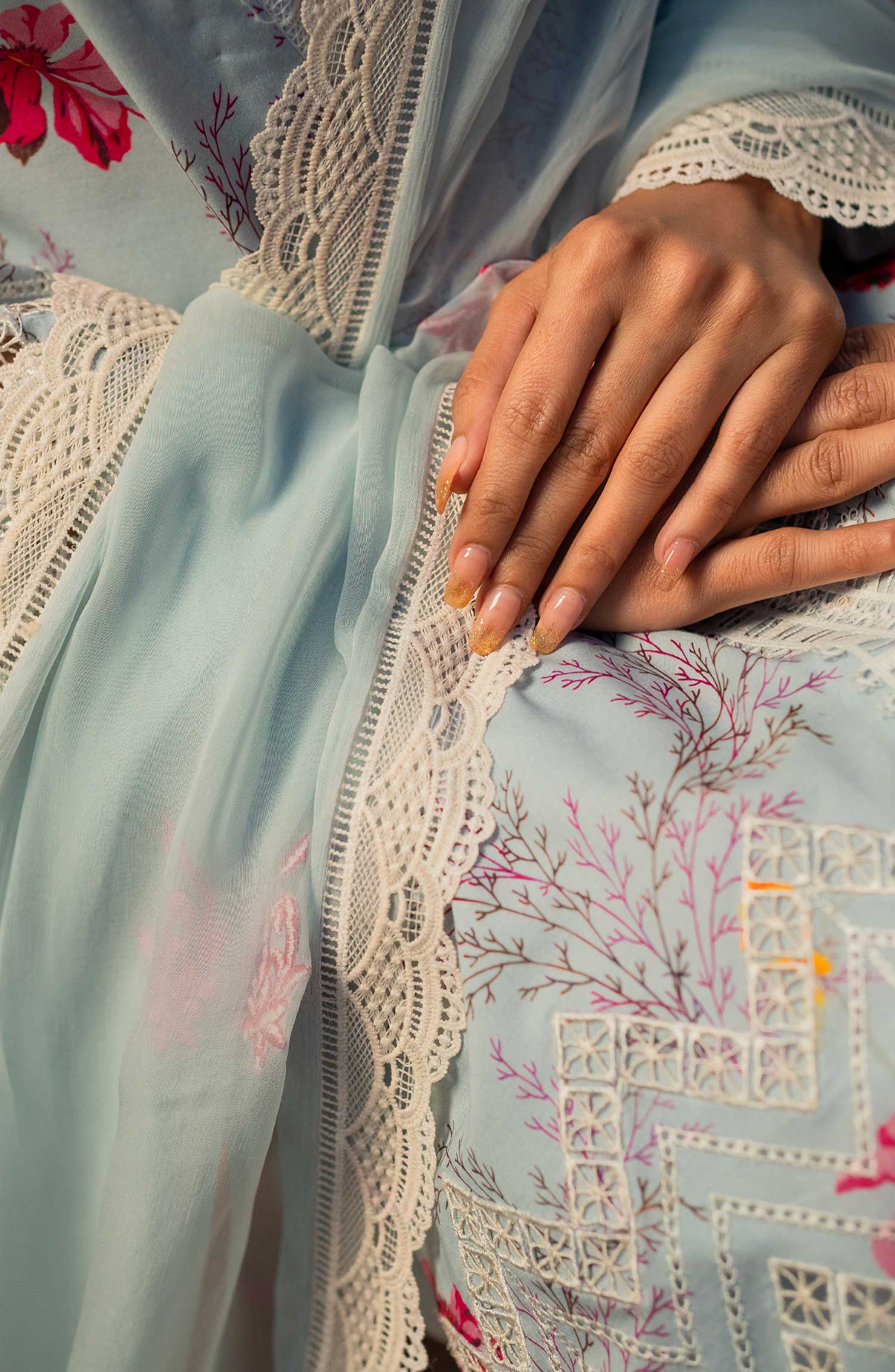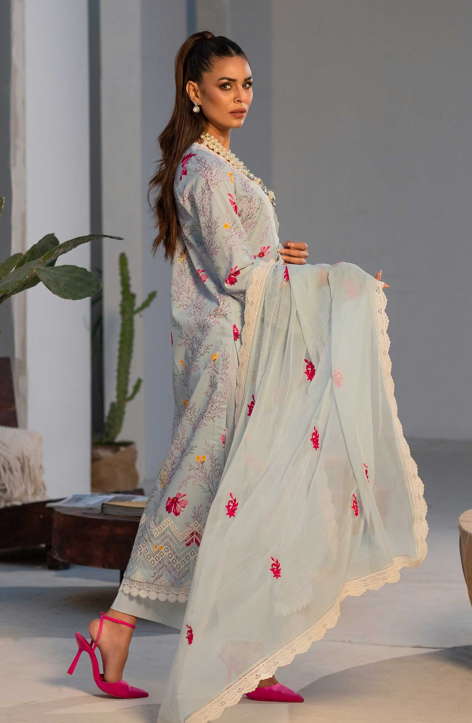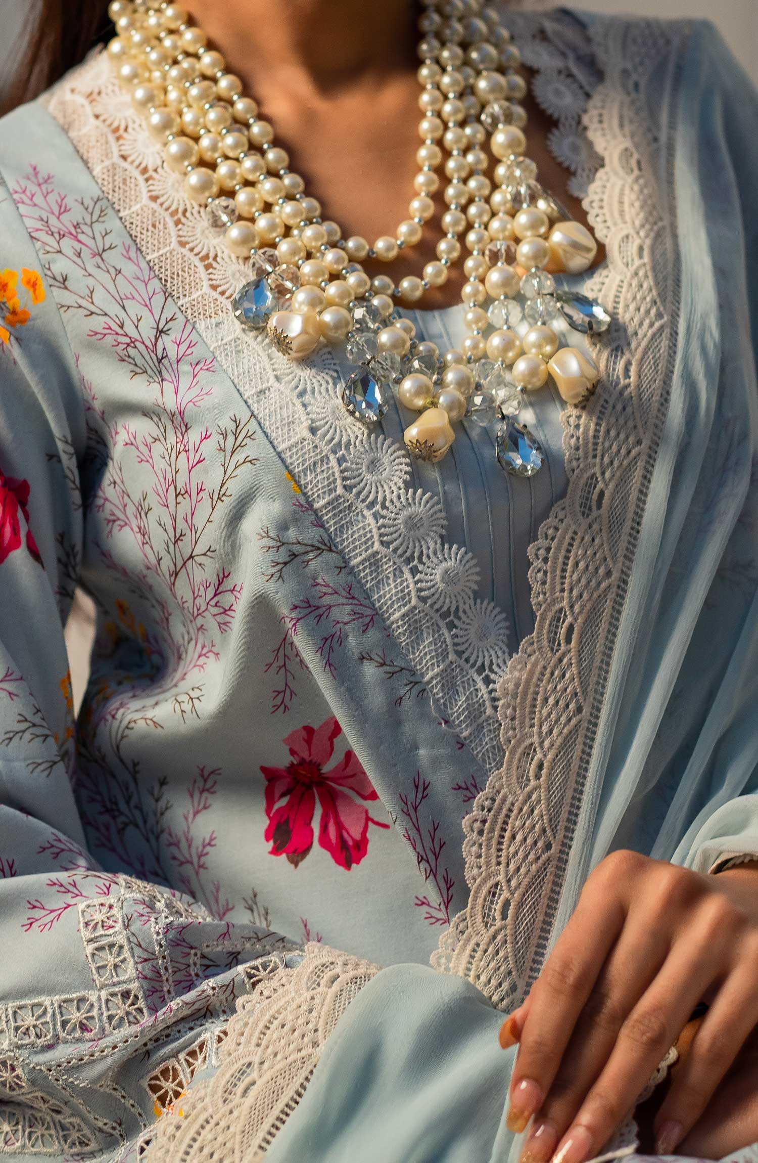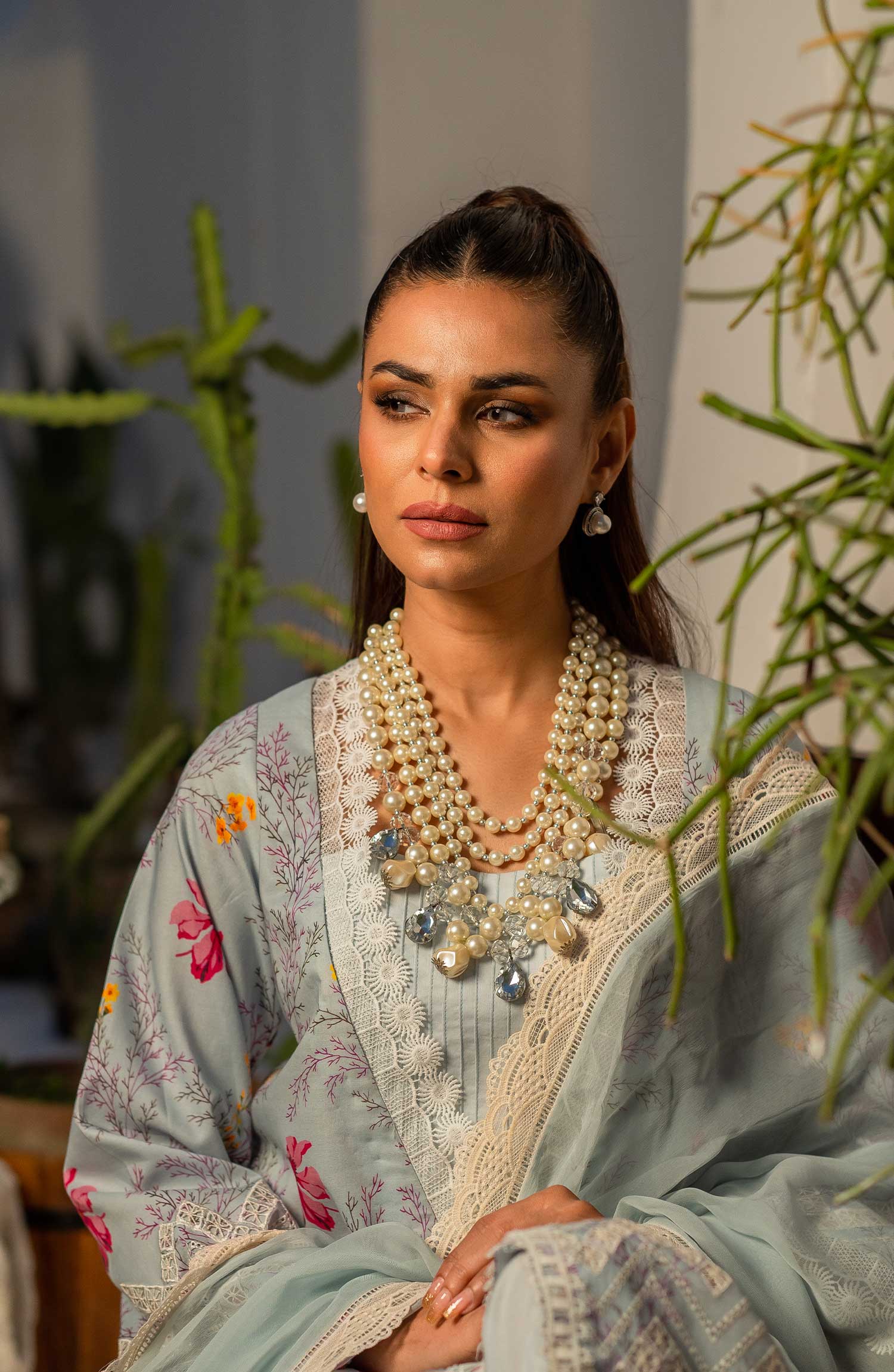 Mavi Luxury Unstitched Lawn Collection Vol 02 has been styled in the image for photography and illustrative purposes.