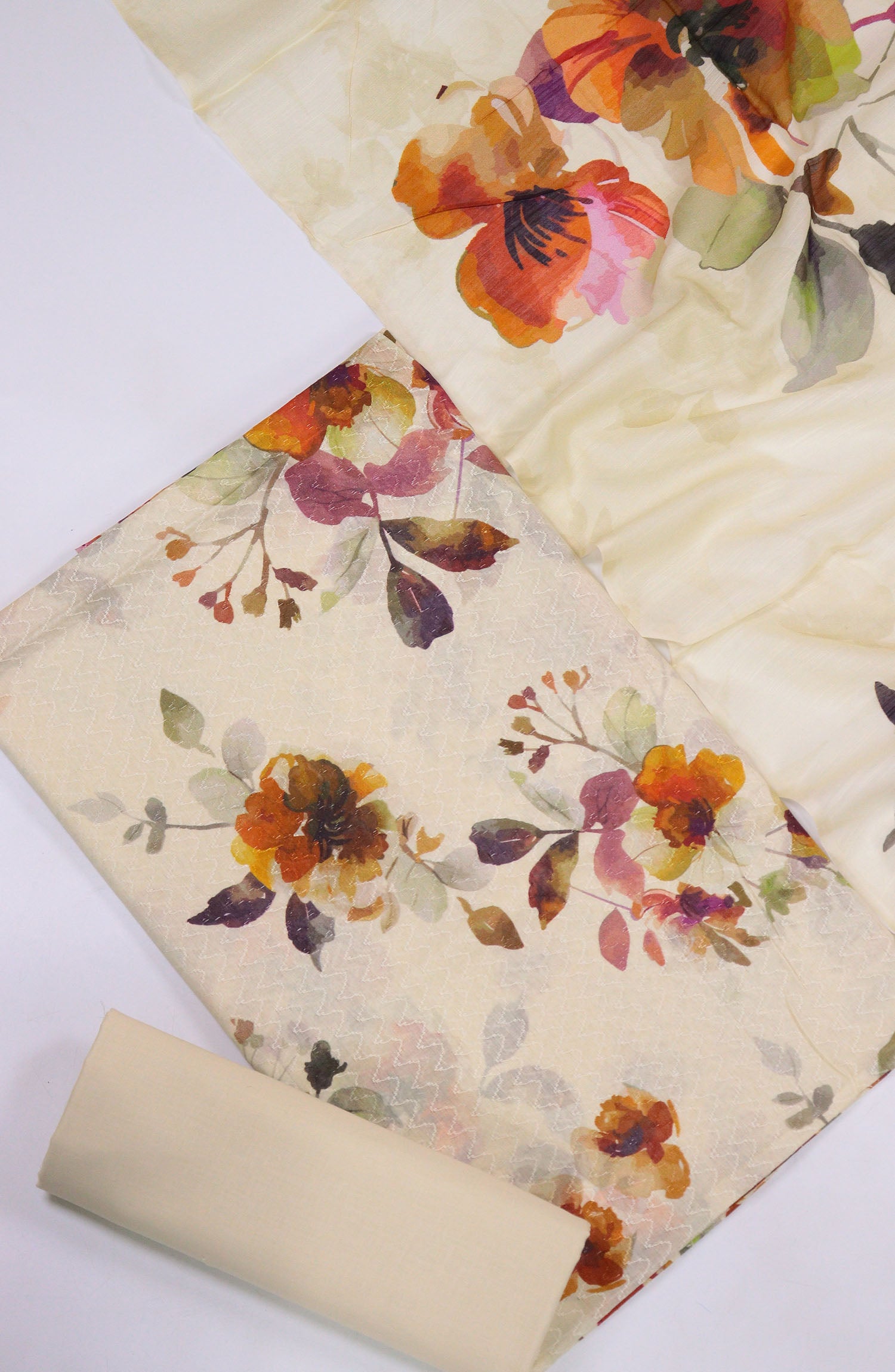 Maya by Amna Khadija Printed Lawn Unstitched 3 Piece Suit - D-08 - AM25MPPSL - Off White - Summer Collection