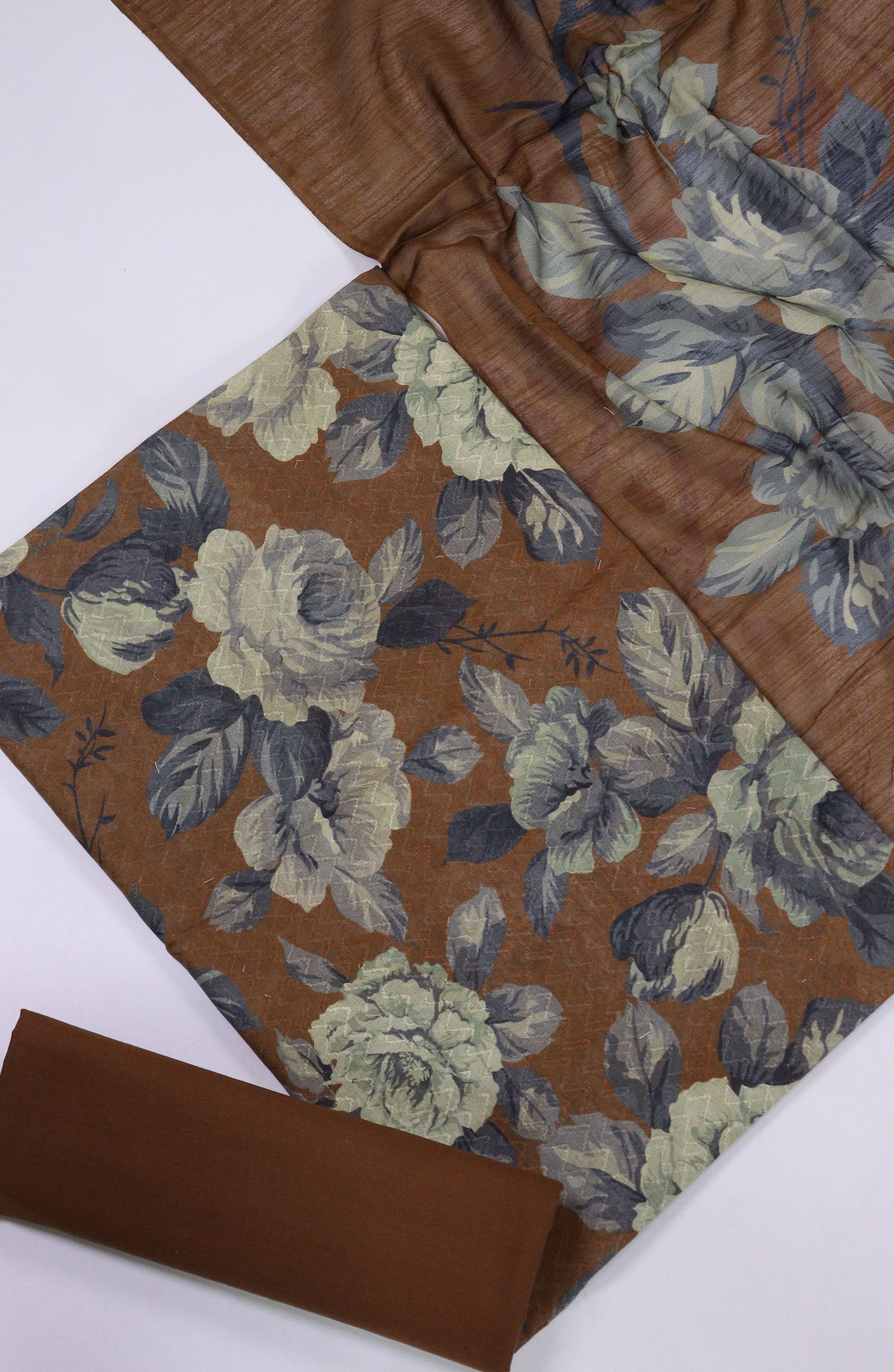 Home Maya by Amna Khadija Printed Lawn Unstitched 3 Piece Suit - D-12 - AM25MPPSL - Brown - Summer Collection