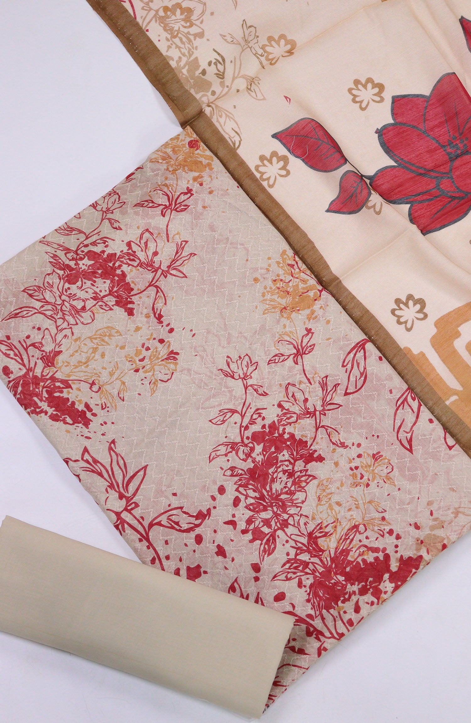 Home Maya by Amna Khadija Printed Lawn Unstitched 3 Piece Suit - D-15 - AM25MPPSL - Beige - Summer Collection