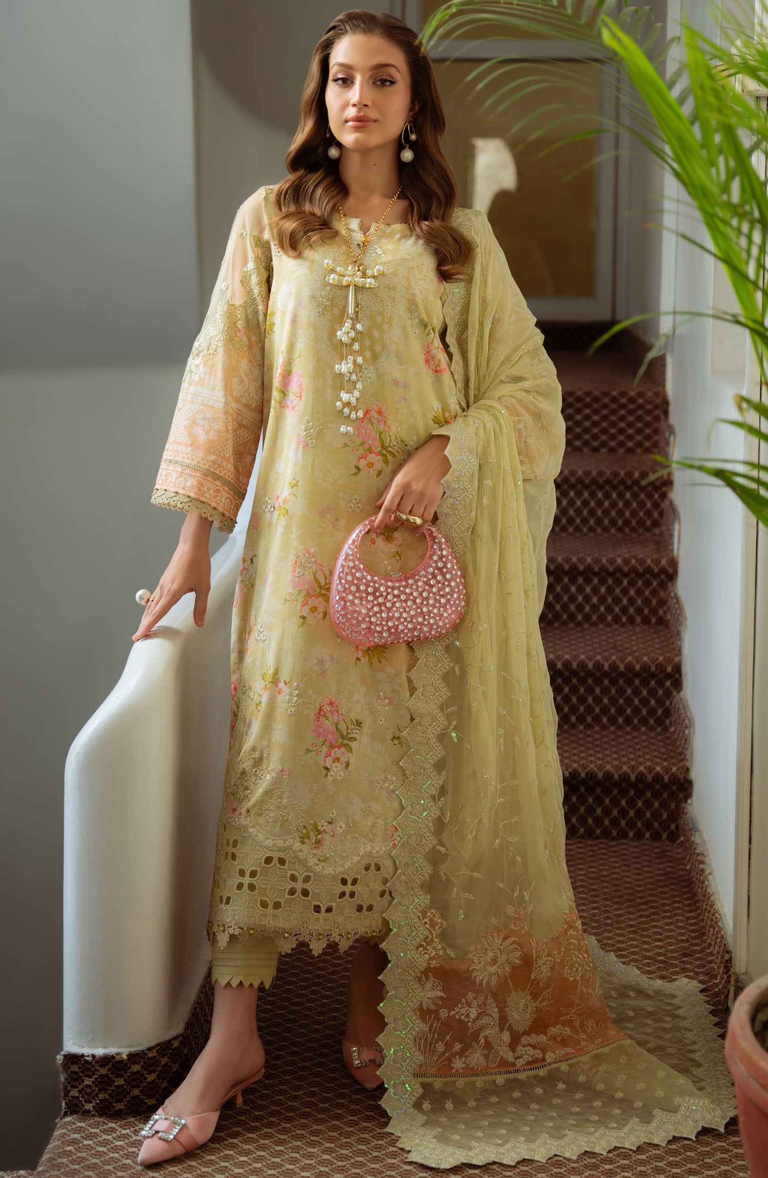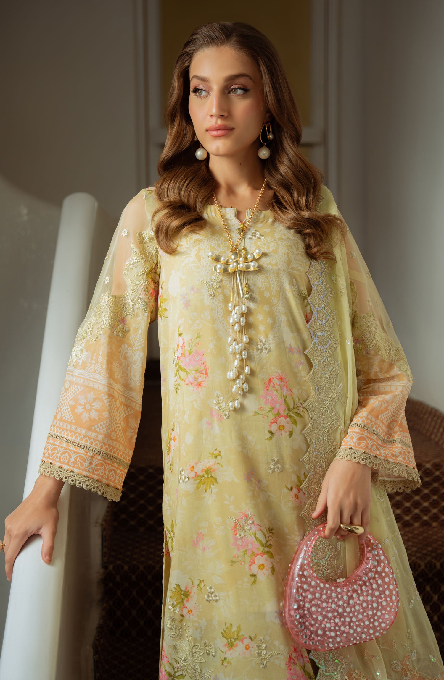 Home Maya by Nureh Embroidered Lawn Unstitched 3 Piece Suit - NS-149 - NU25MS - Yellow - Summer Collection