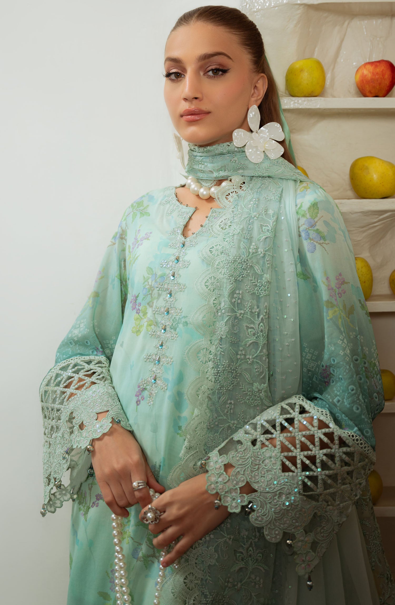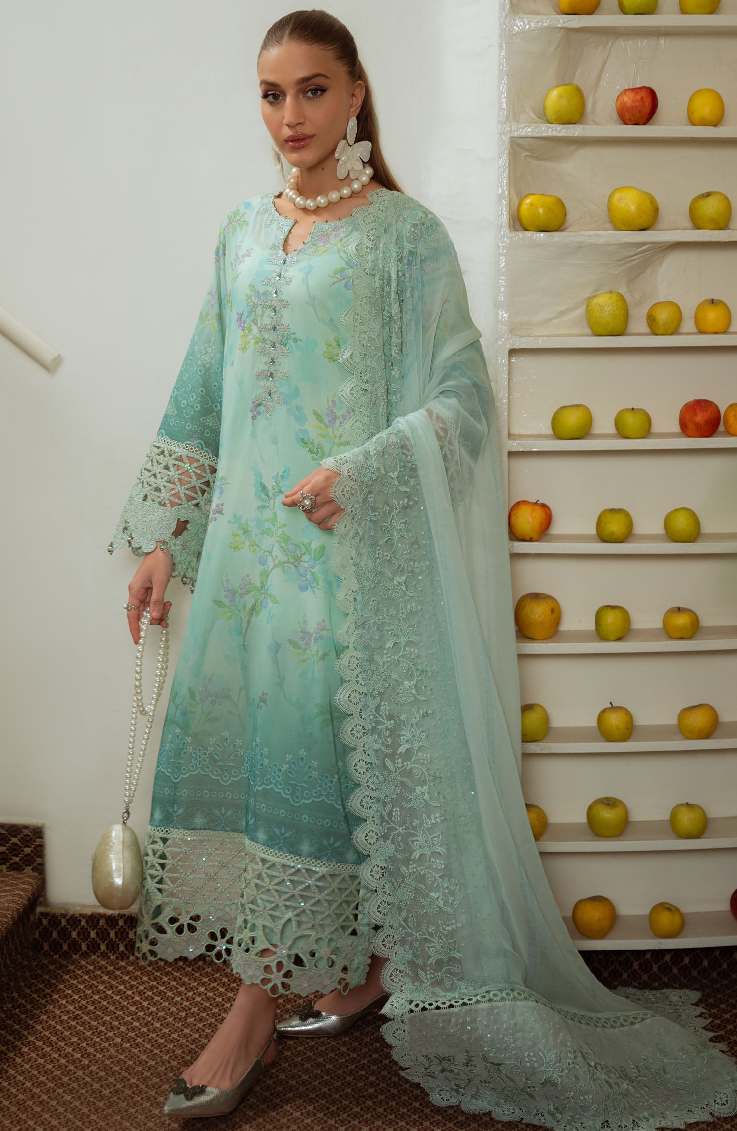 Embroidered And Printed Swiss Lawn