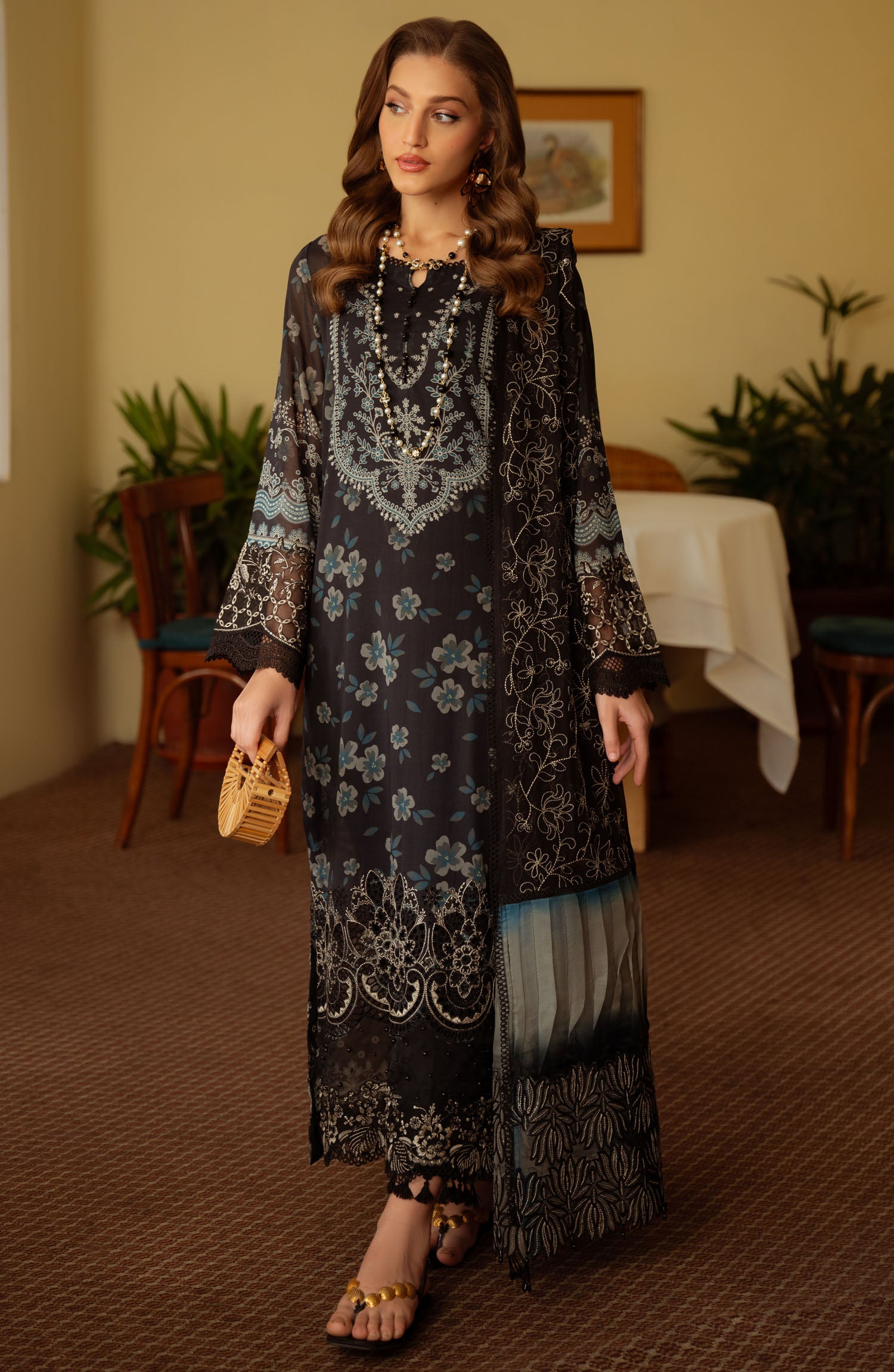 The standard style comes as a long-sleeved kameez with dupatta and trouser/shawlar.