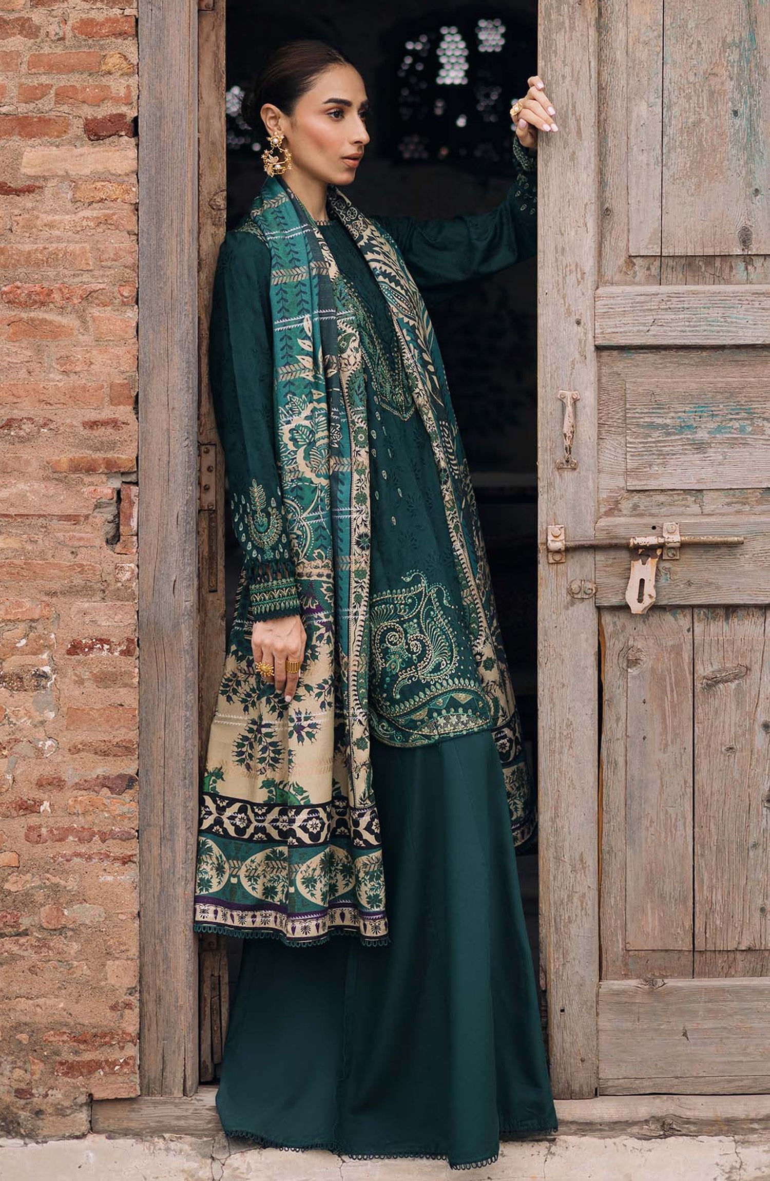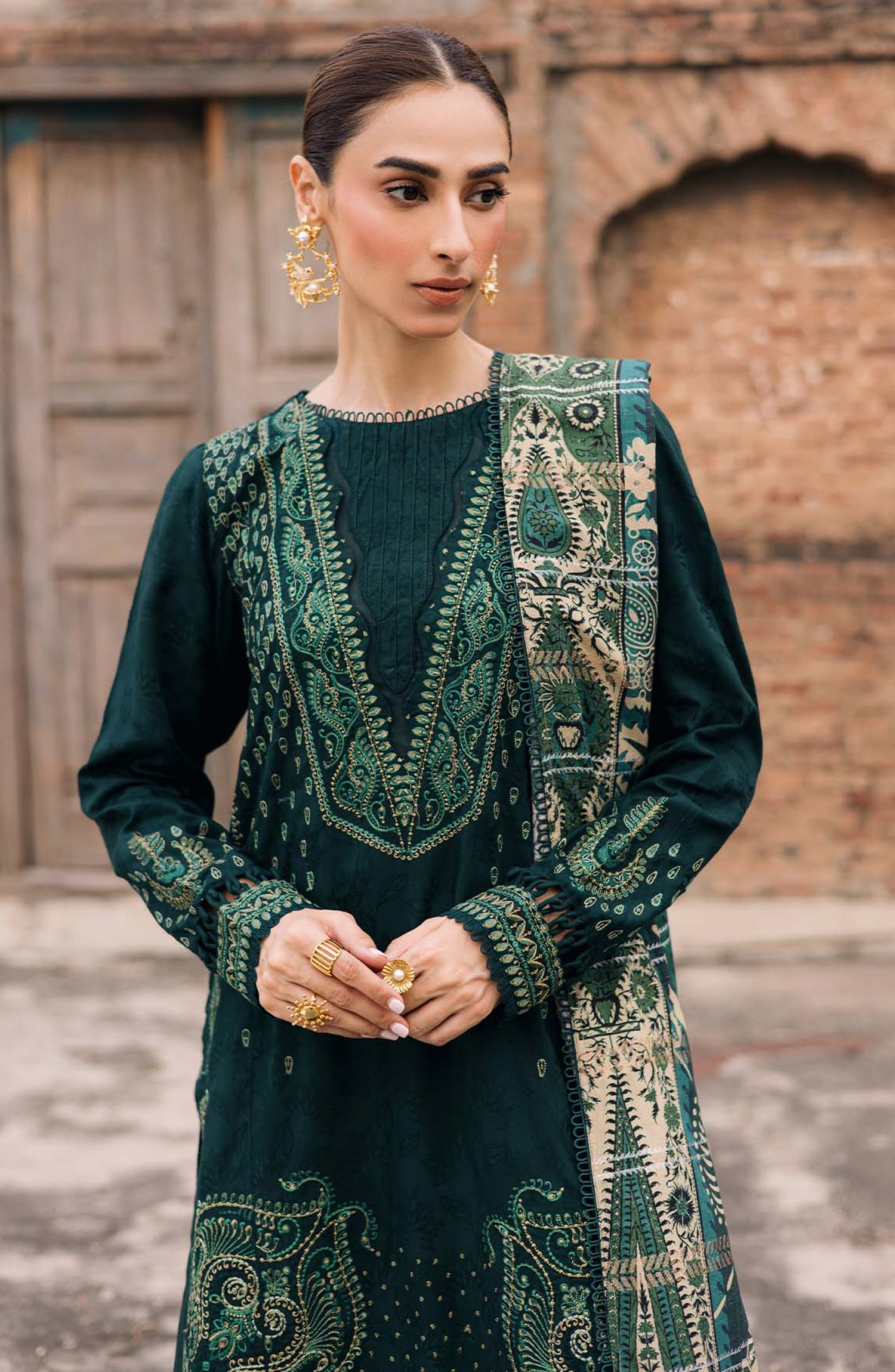 Maya by Nureh Embroidered Self Linen Jacquard Unstitched 3 Piece Suit - NW-103 - NU25MYA - Green - Winter Collection