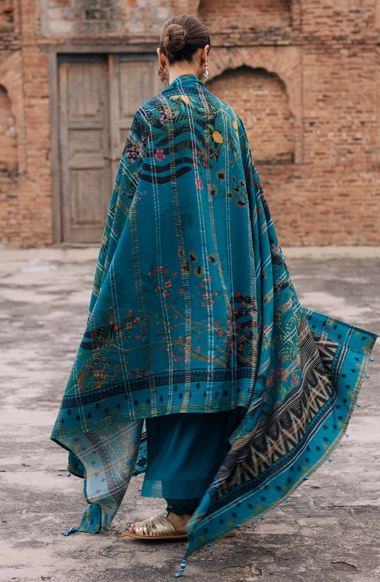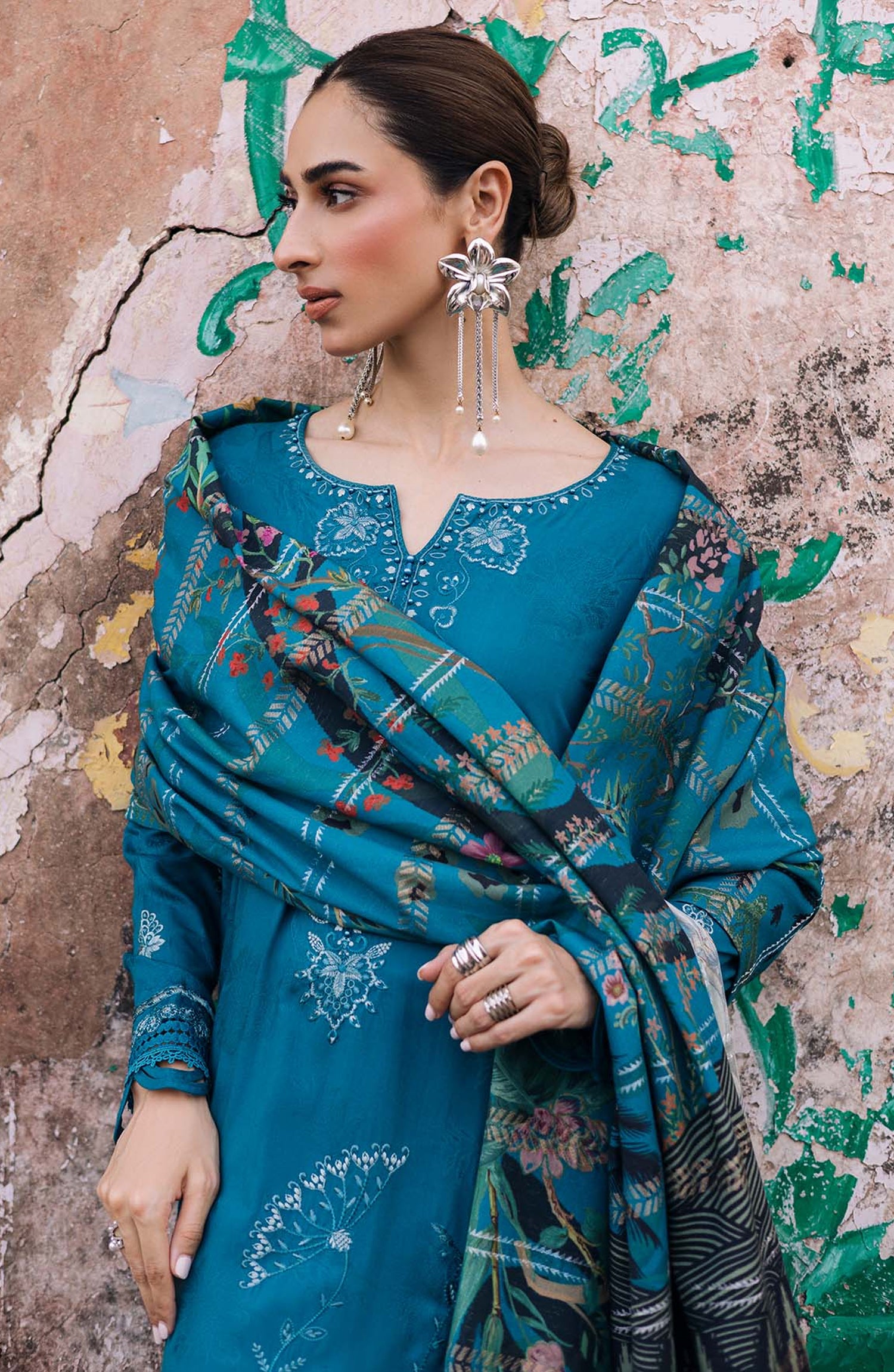 Maya by Nureh Embroidered Self Linen Jacquard Unstitched 3 Piece Suit - NW-106 - NU25MYA - Blue - Winter Collection