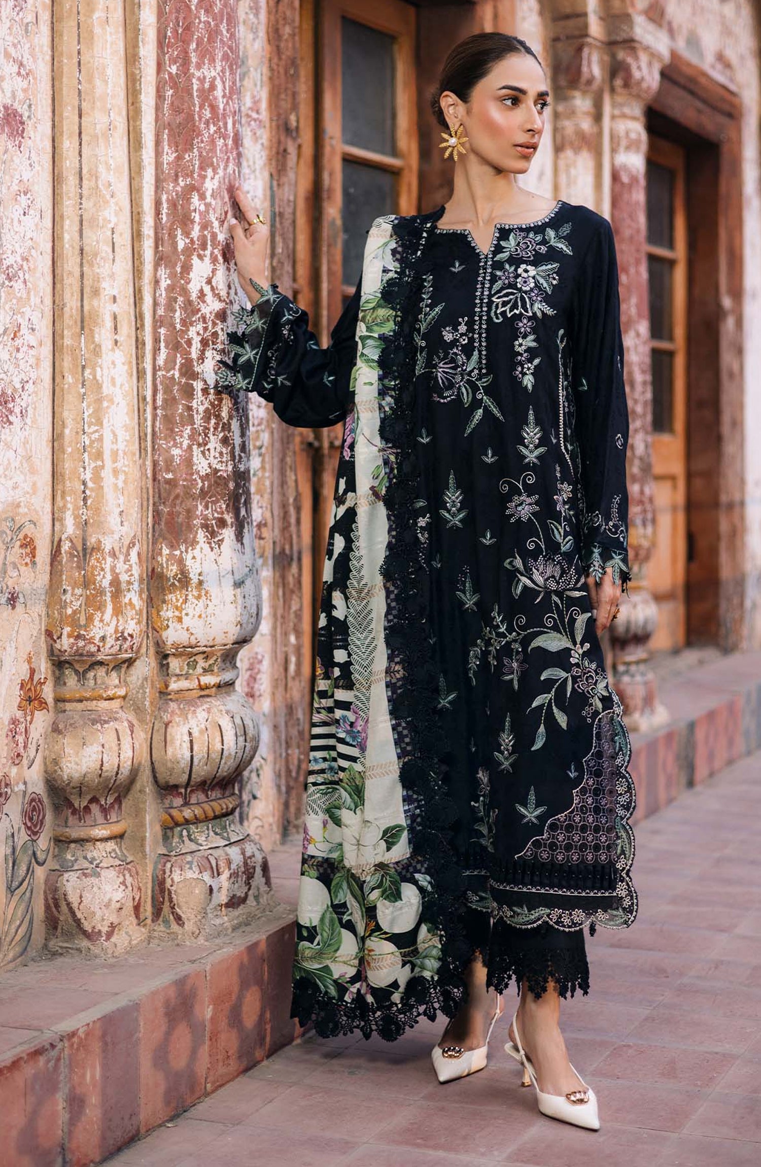 Maya by Nureh Embroidered Self Linen Jacquard Unstitched 3 Piece Suit - NW-107 - NU25MYA - Black - Winter Collection
