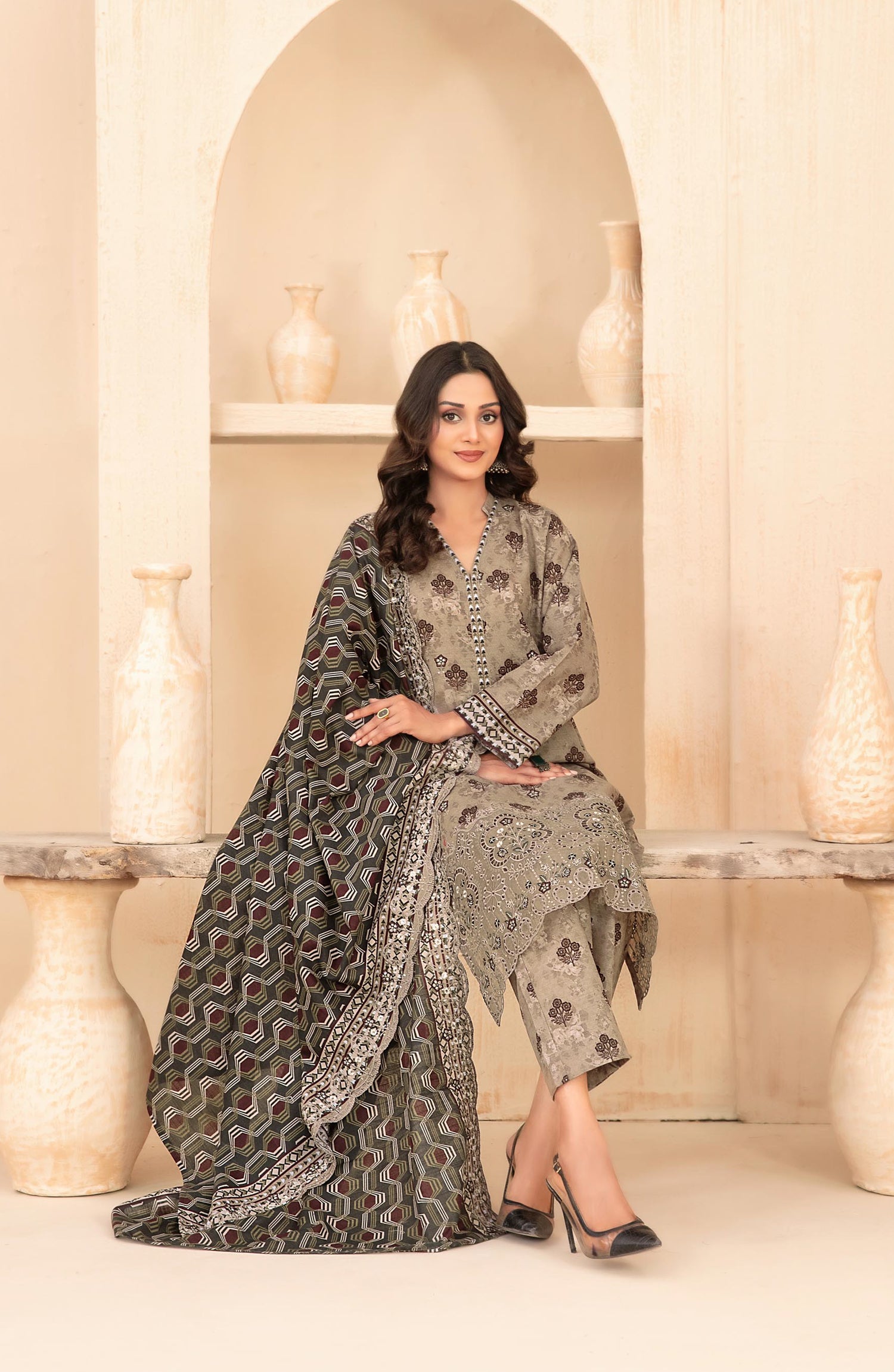 Embroidered Khaddar Rotary Print ShirtRotary Print Cutwork DupattaPrinted Trouser