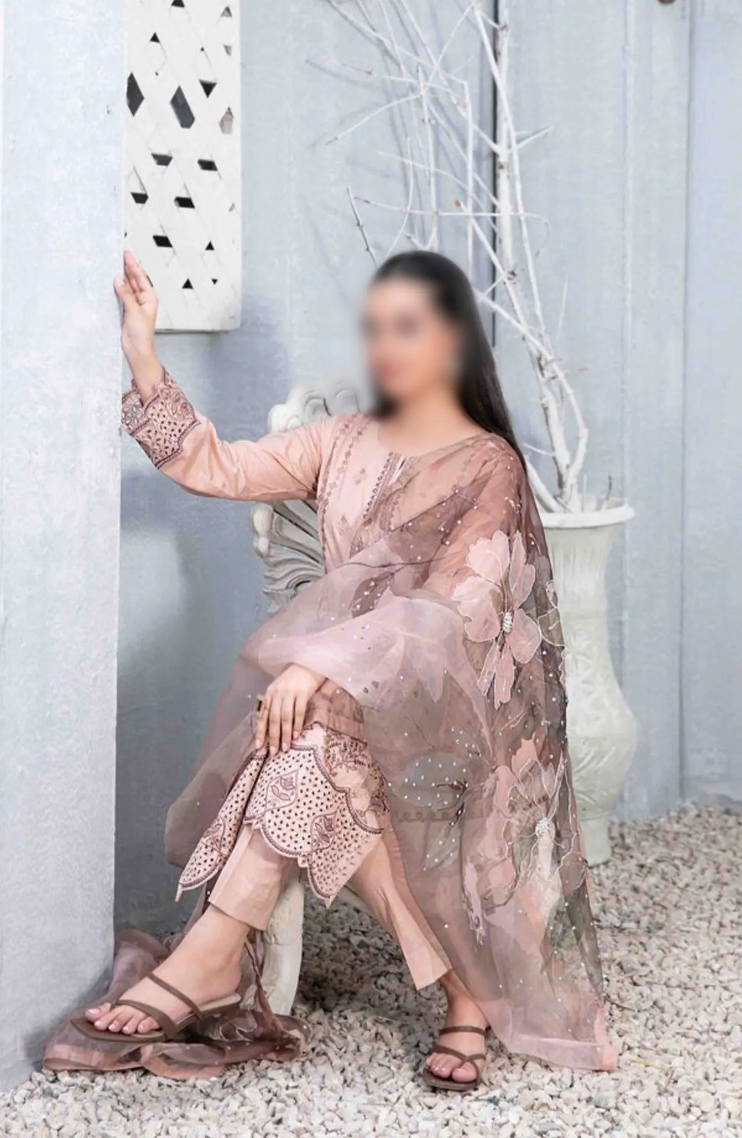 Rua by Casual Lite Embroidered Premium Linen Stitched 3 Piece Suit - D-05 Blush Poem - CL25RU - Pink - Winter Collection