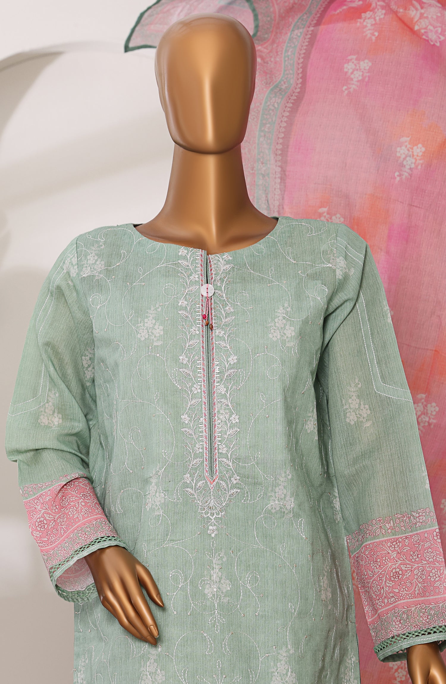 Digital Printed Meenakari Embroidered Shamray Cotton Shirt