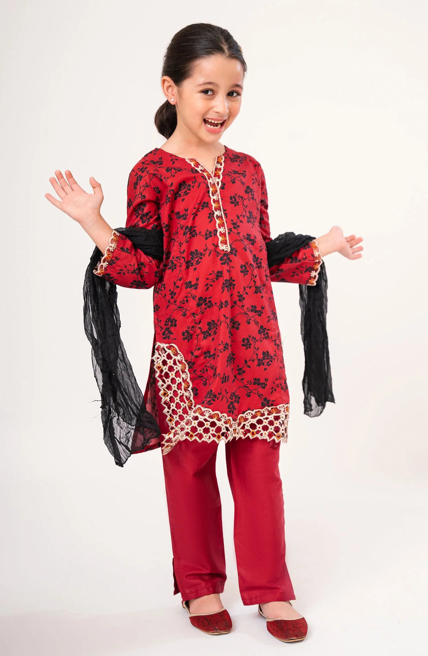 Meenu Neenu Girls Cutwork Emb Lawn Pret Collection Vol 04 has been styled in the image for photography and illustrative purposes.