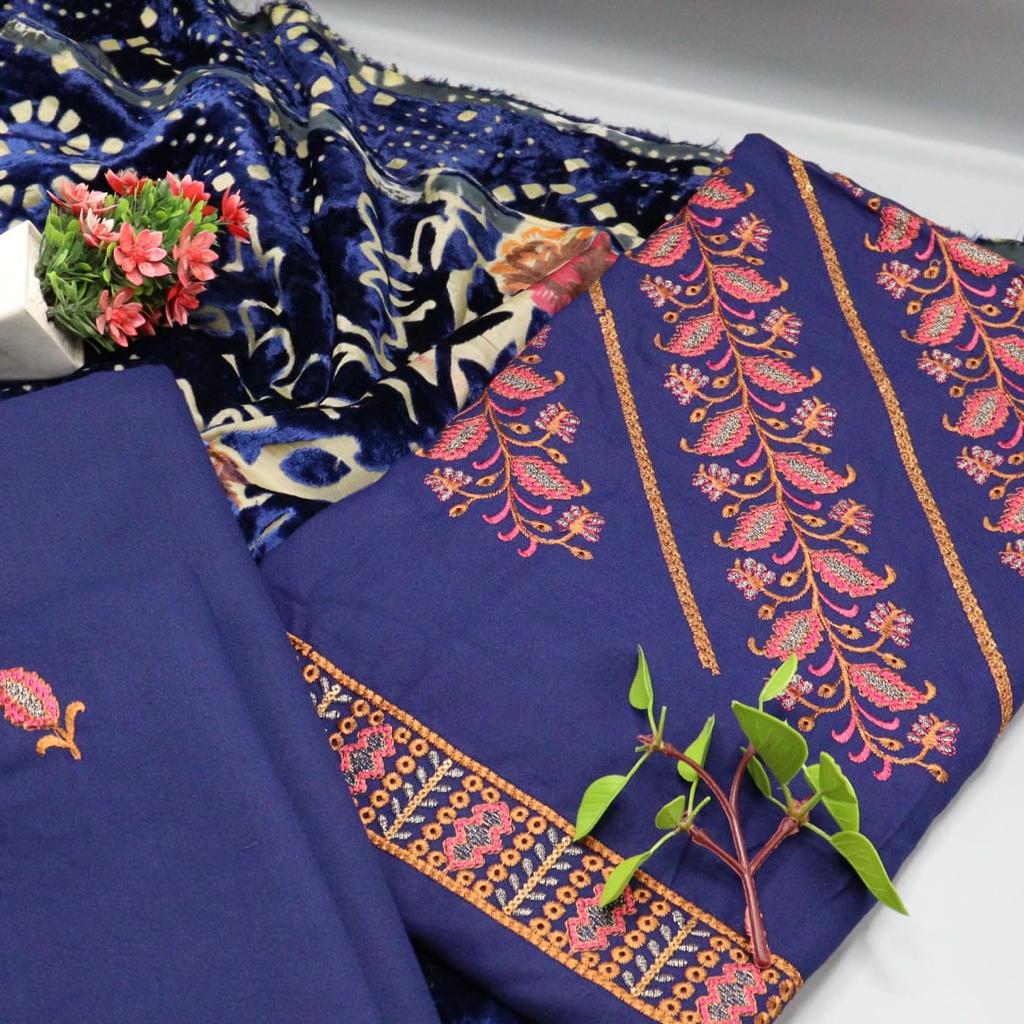 Unstiched Embroidered Dhanak suit with Velvet Dupatta