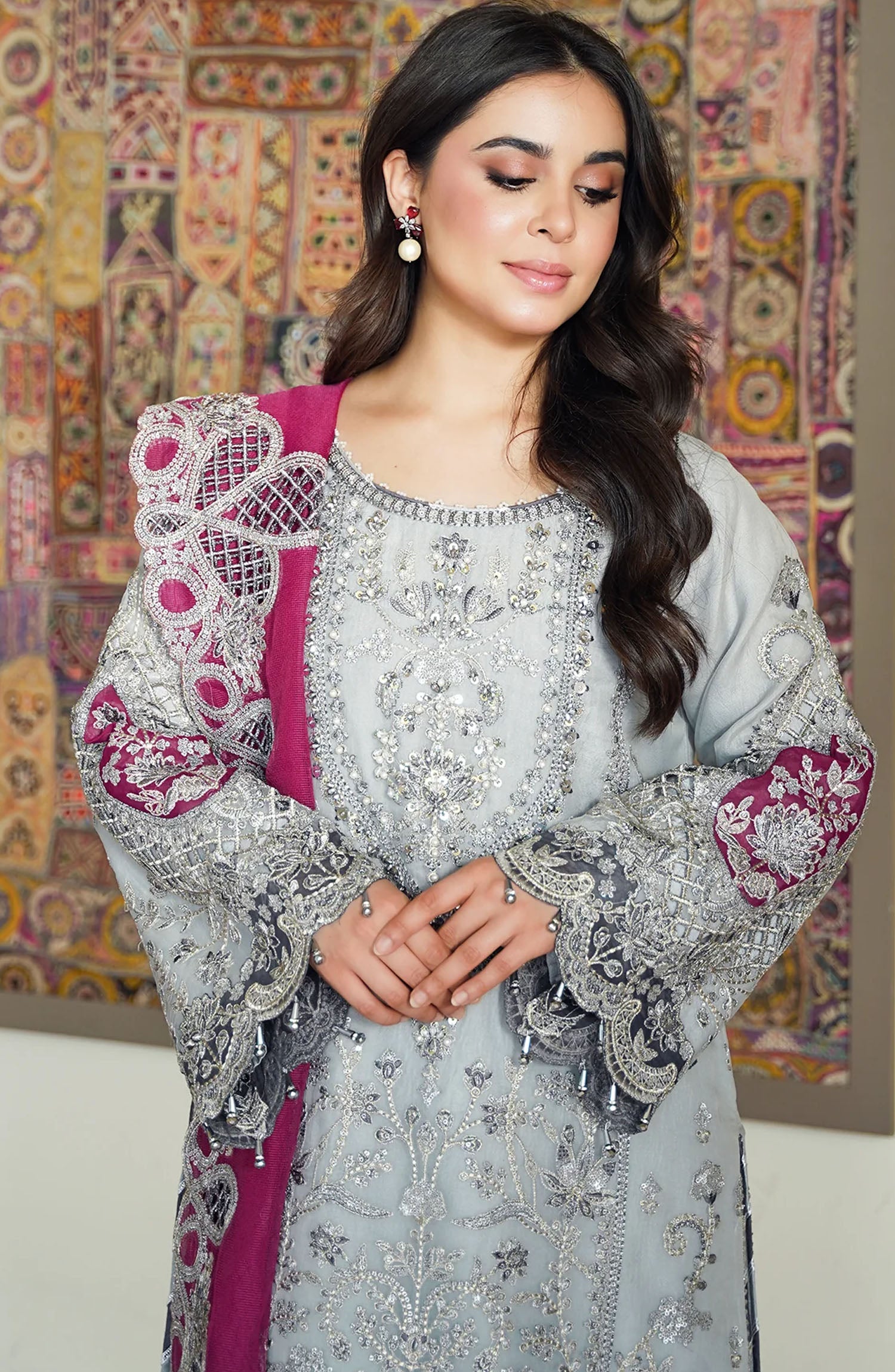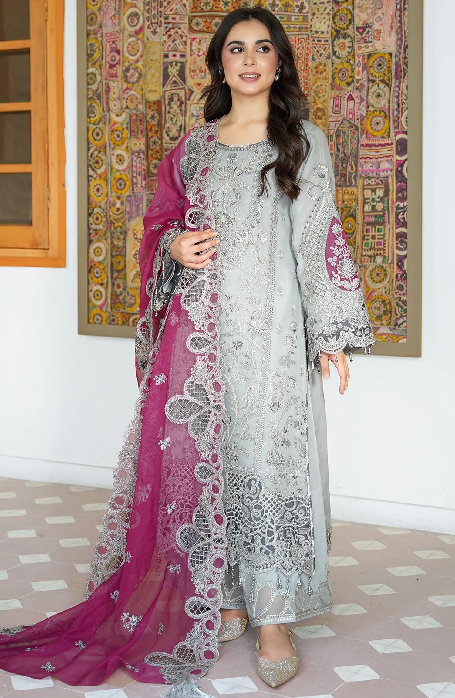Meeras by Imrozia Embroidered Organza Unstitched 3 Piece Suit - I-228 Zareen - IMP25MF - Blue - Festive Collection