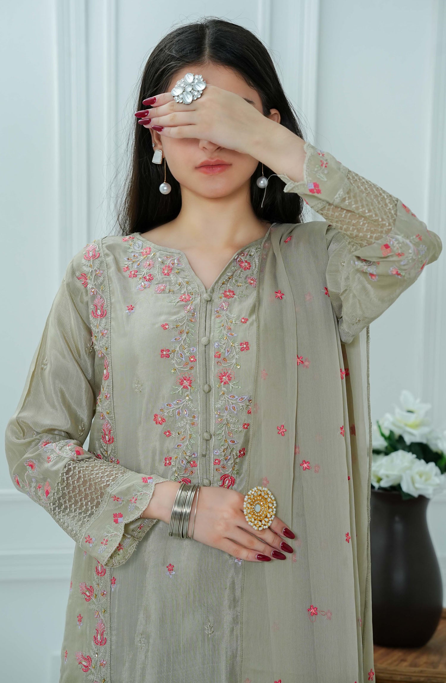 Meet Malina by Amna Khadija Embroidered Raw Silk Stitched 3 Piece Suit - MM-01 - AM25MM - Green - Formal Collection