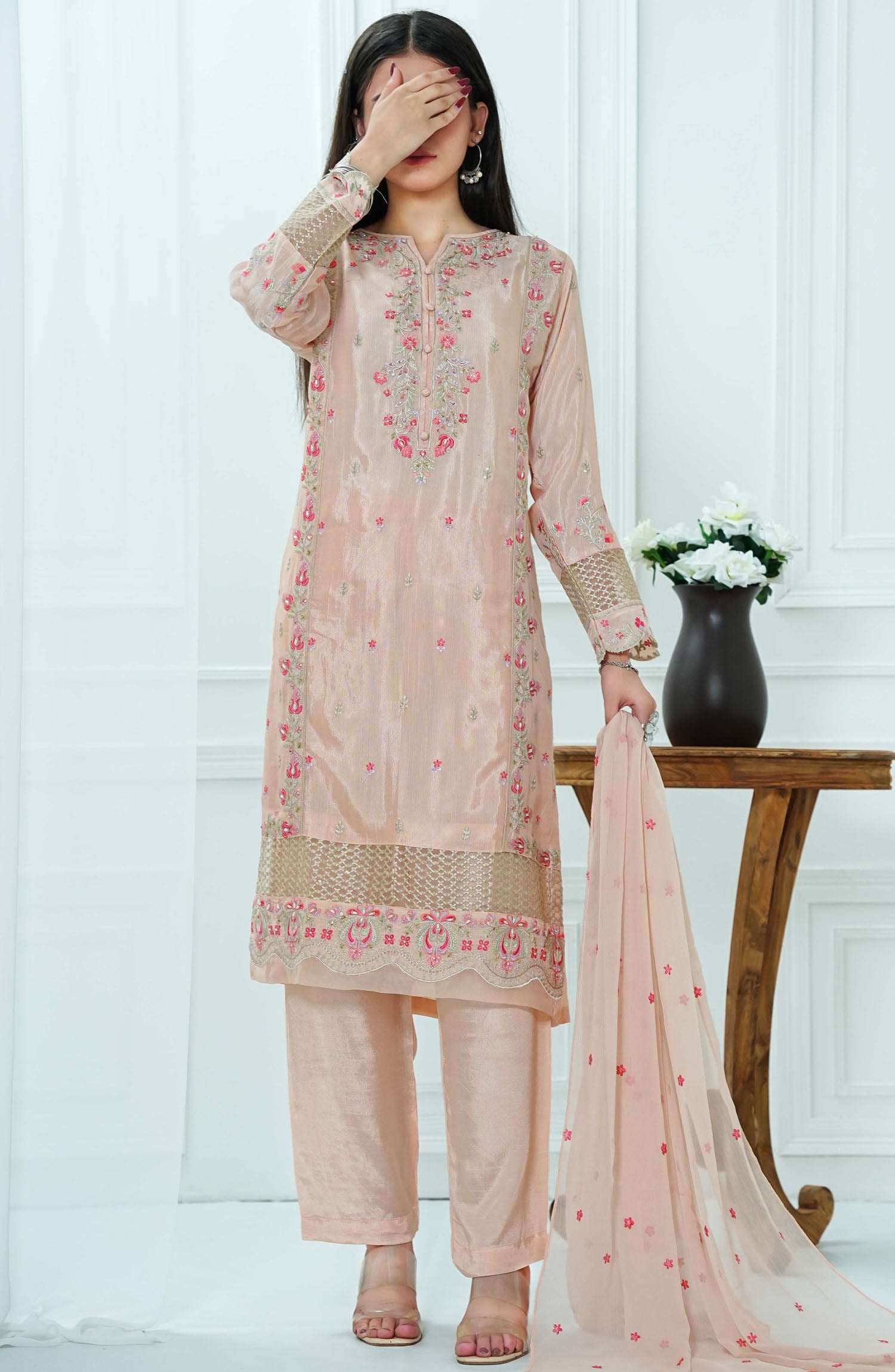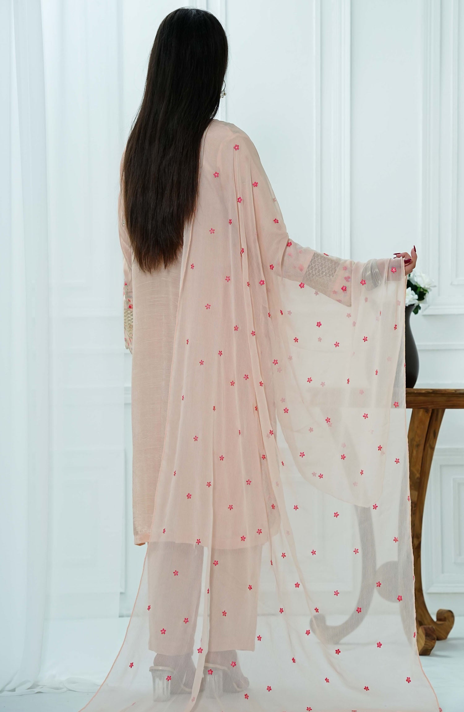 Meet Malina by Amna Khadija Embroidered Raw Silk Stitched 3 Piece Suit - MM-04 - AM25MM - Pink - Formal Collection
