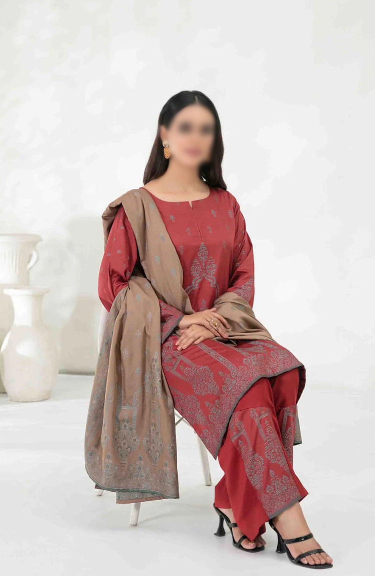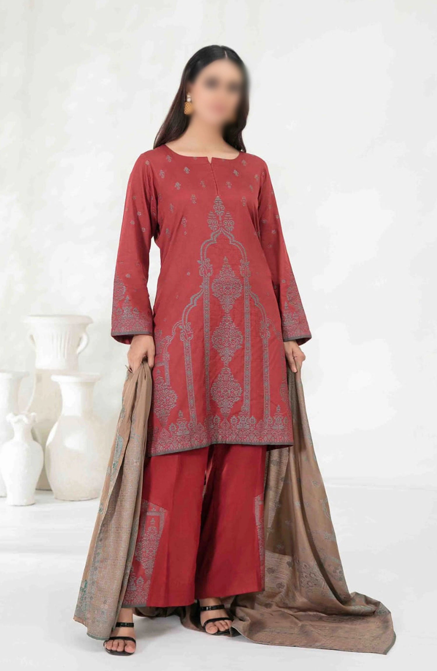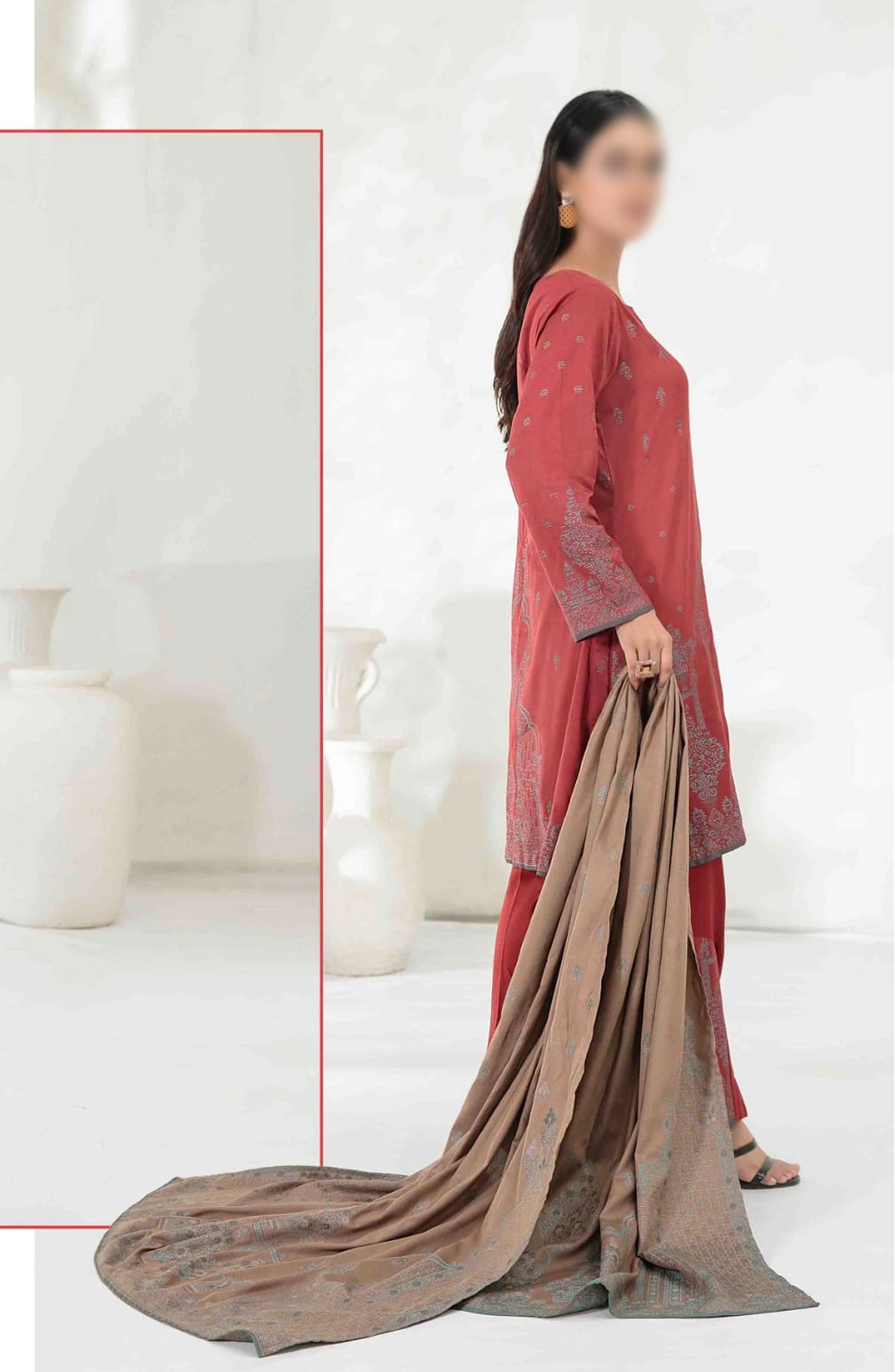 Modest Embroidered Khaddar Stitched 3 Piece Suit - 10050-Mar - MOD25WNT - Maroon - Winter Collection