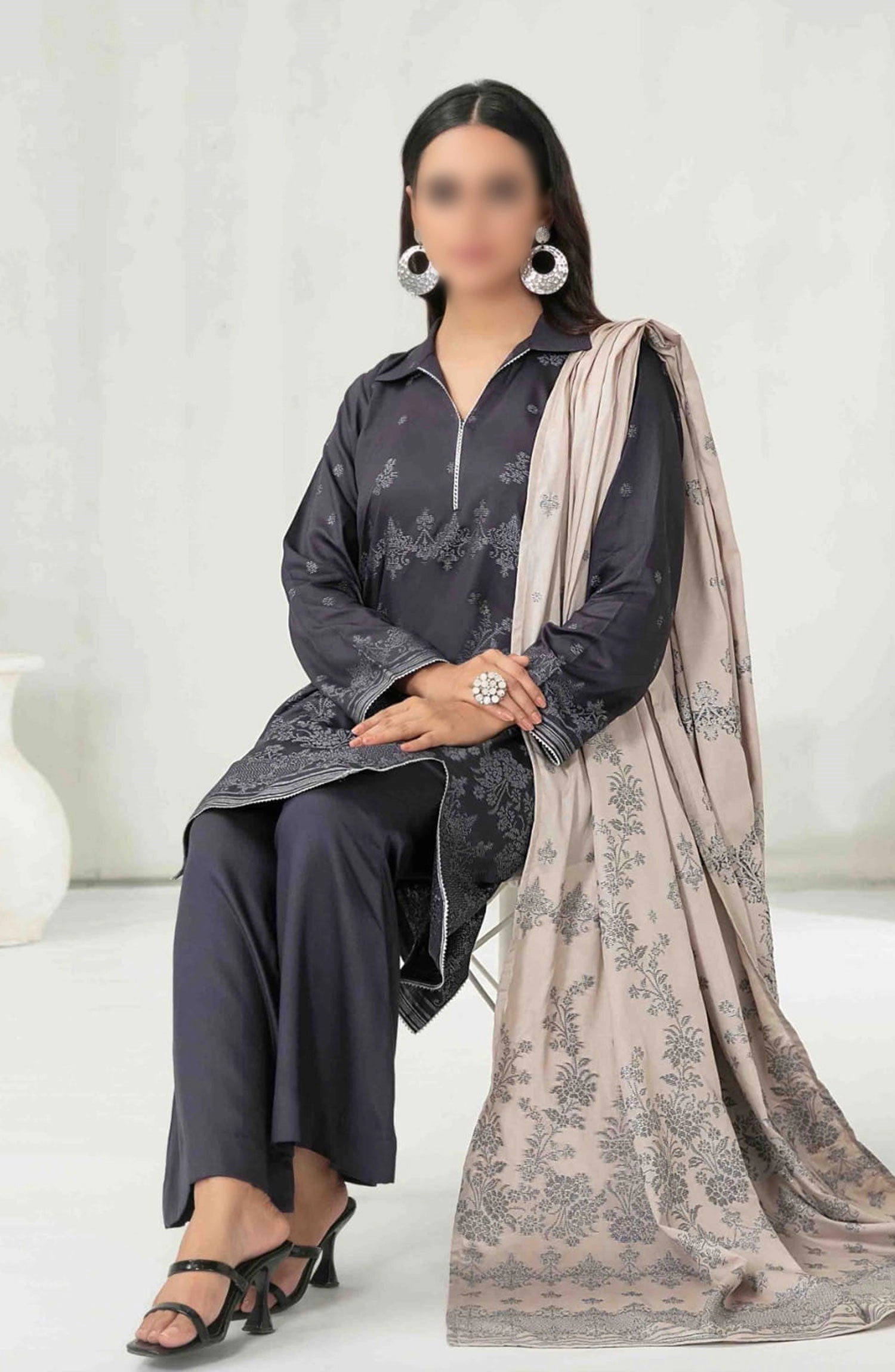 Modest Embroidered Khaddar Stitched 3 Piece Suit - 9990-Blk - MOD25WNT - Black - Winter Collection