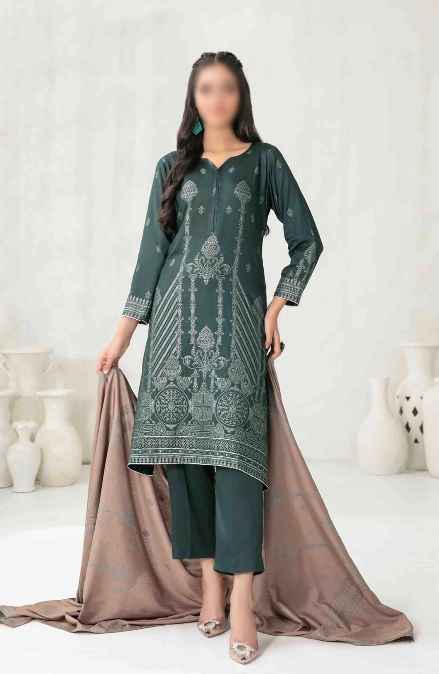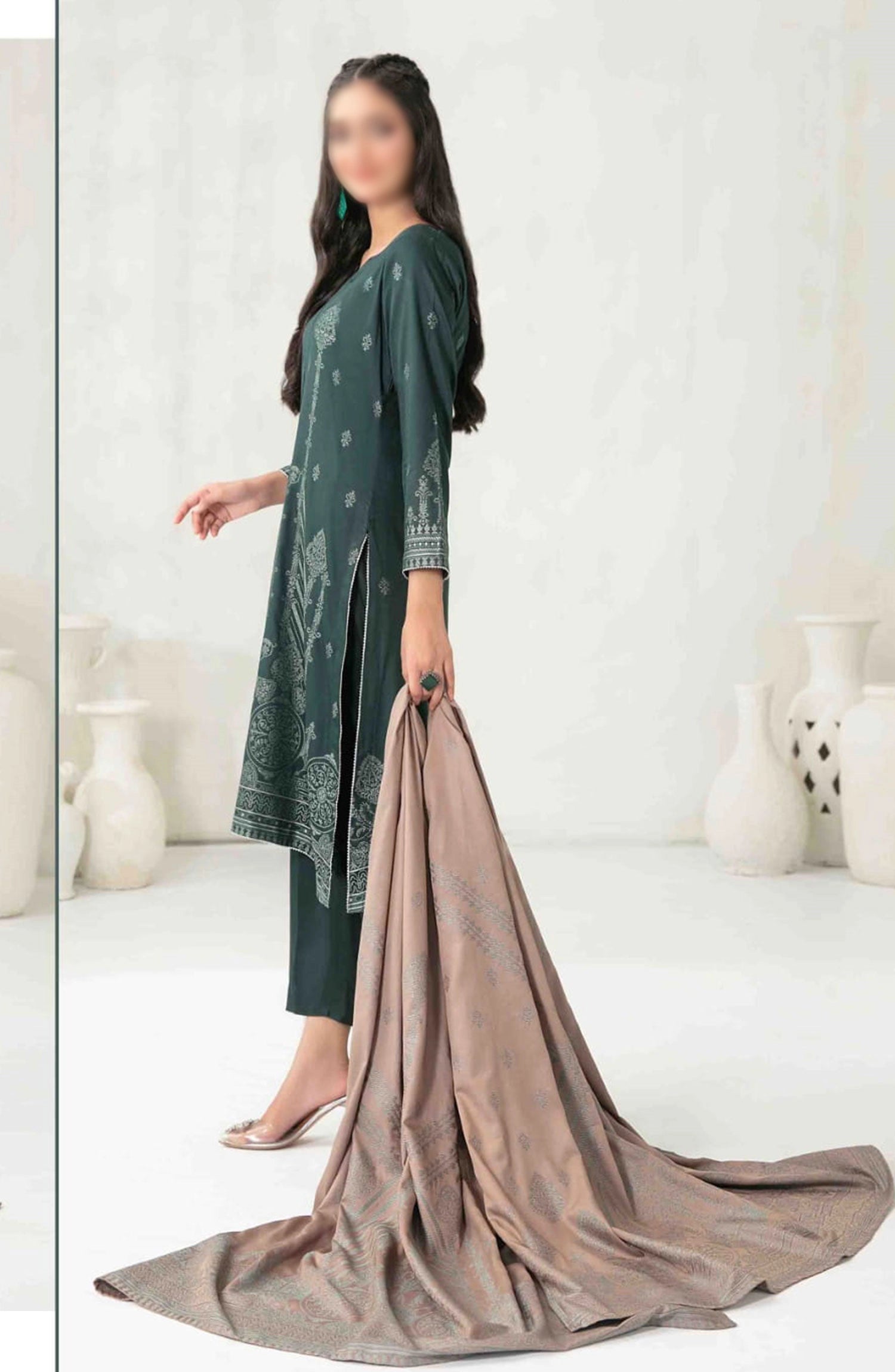 Modest Embroidered Khaddar Stitched 3 Piece Suit - 10040-Pnk - MOD25WNT - Pink - Winter Collection