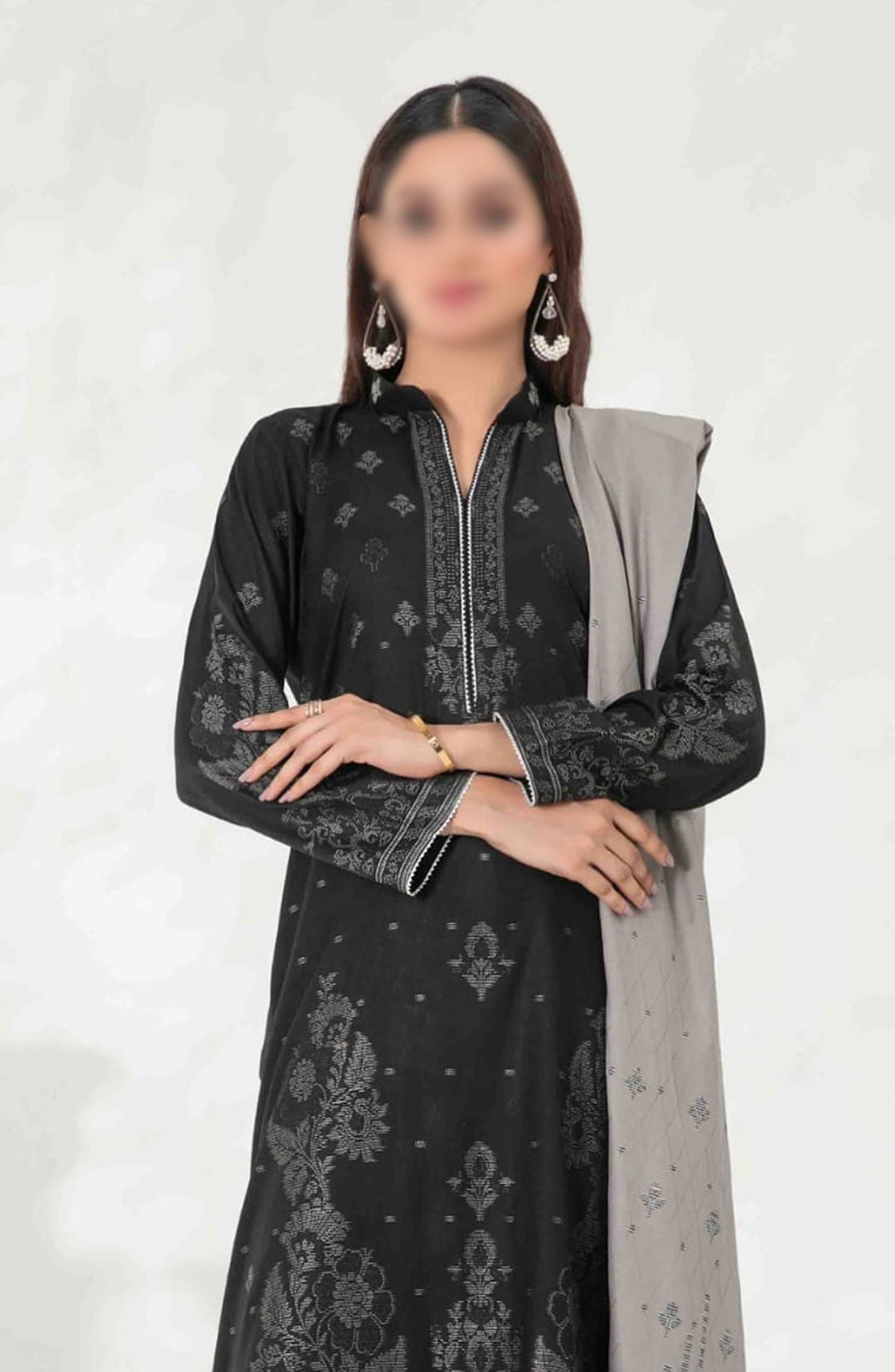 Modest Embroidered Khaddar Stitched 3 Piece Suit - 9990-Blk - MOD25WNT - Black - Winter Collection
