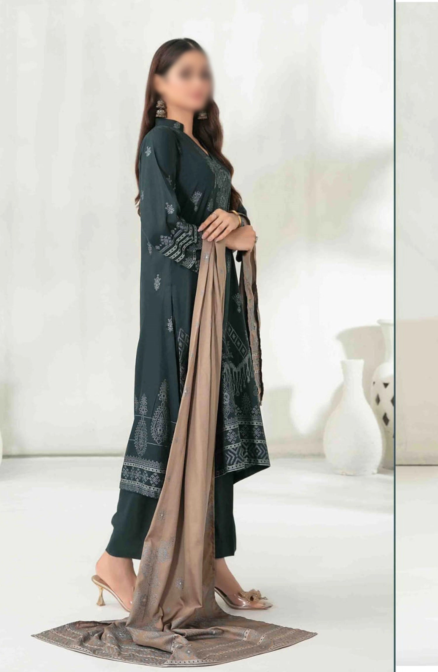 Modest Embroidered Khaddar Stitched 3 Piece Suit - 9990-Blk - MOD25WNT - Black - Winter Collection