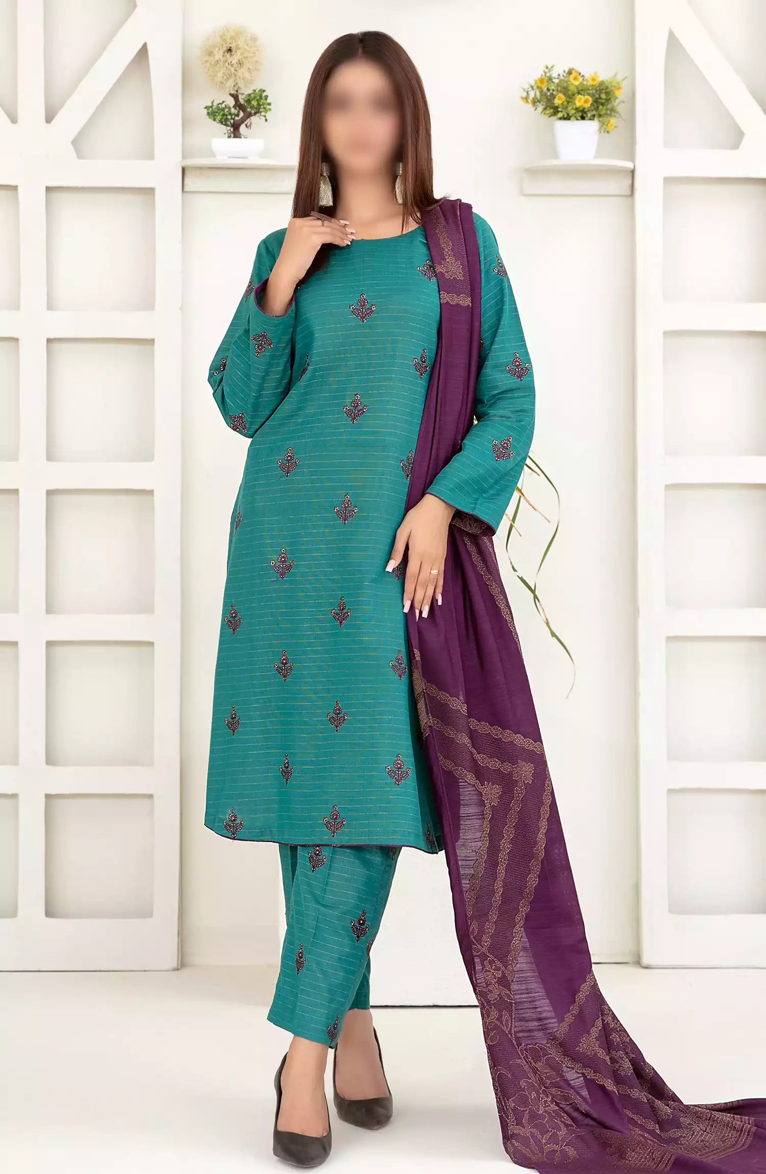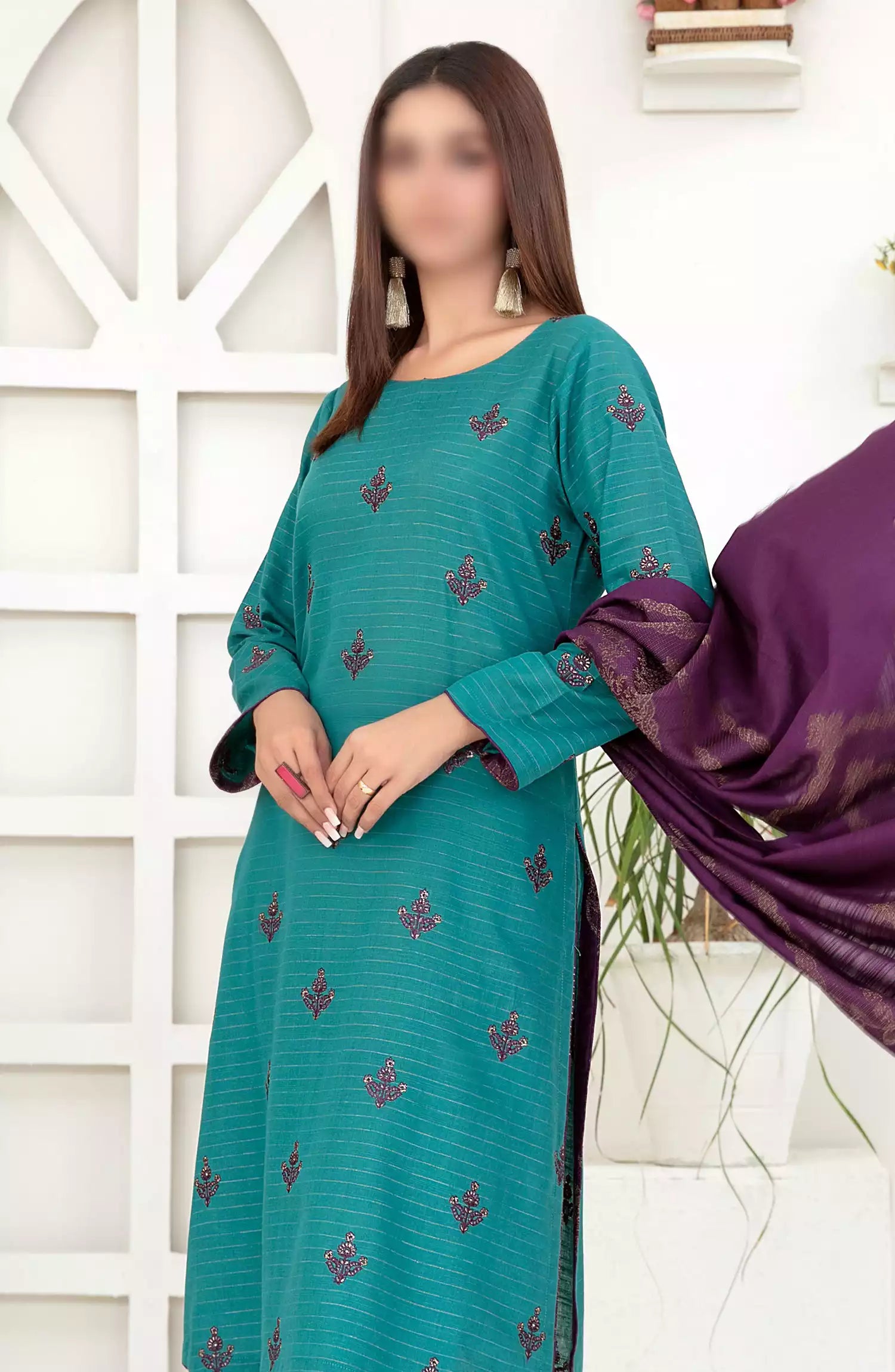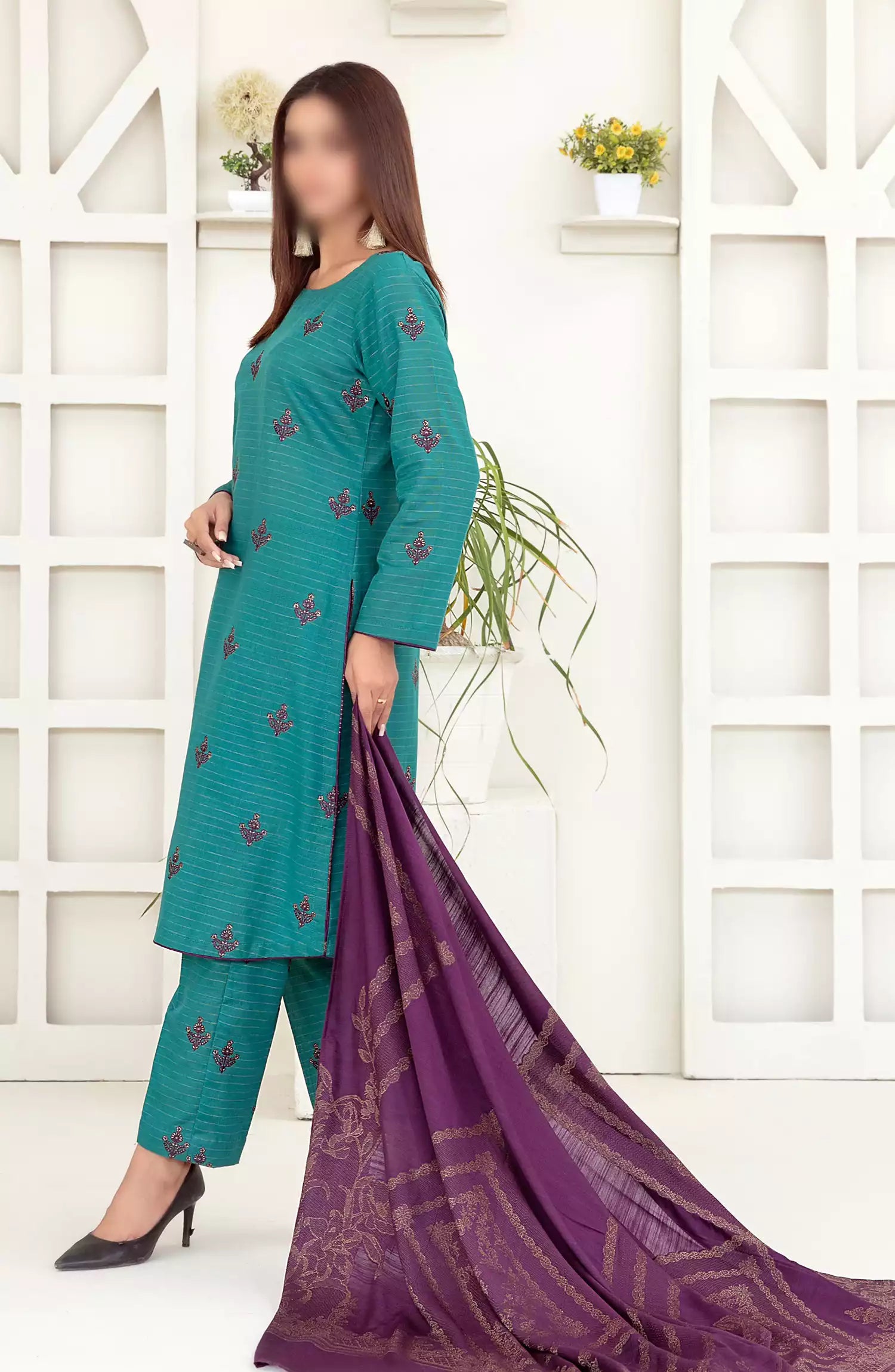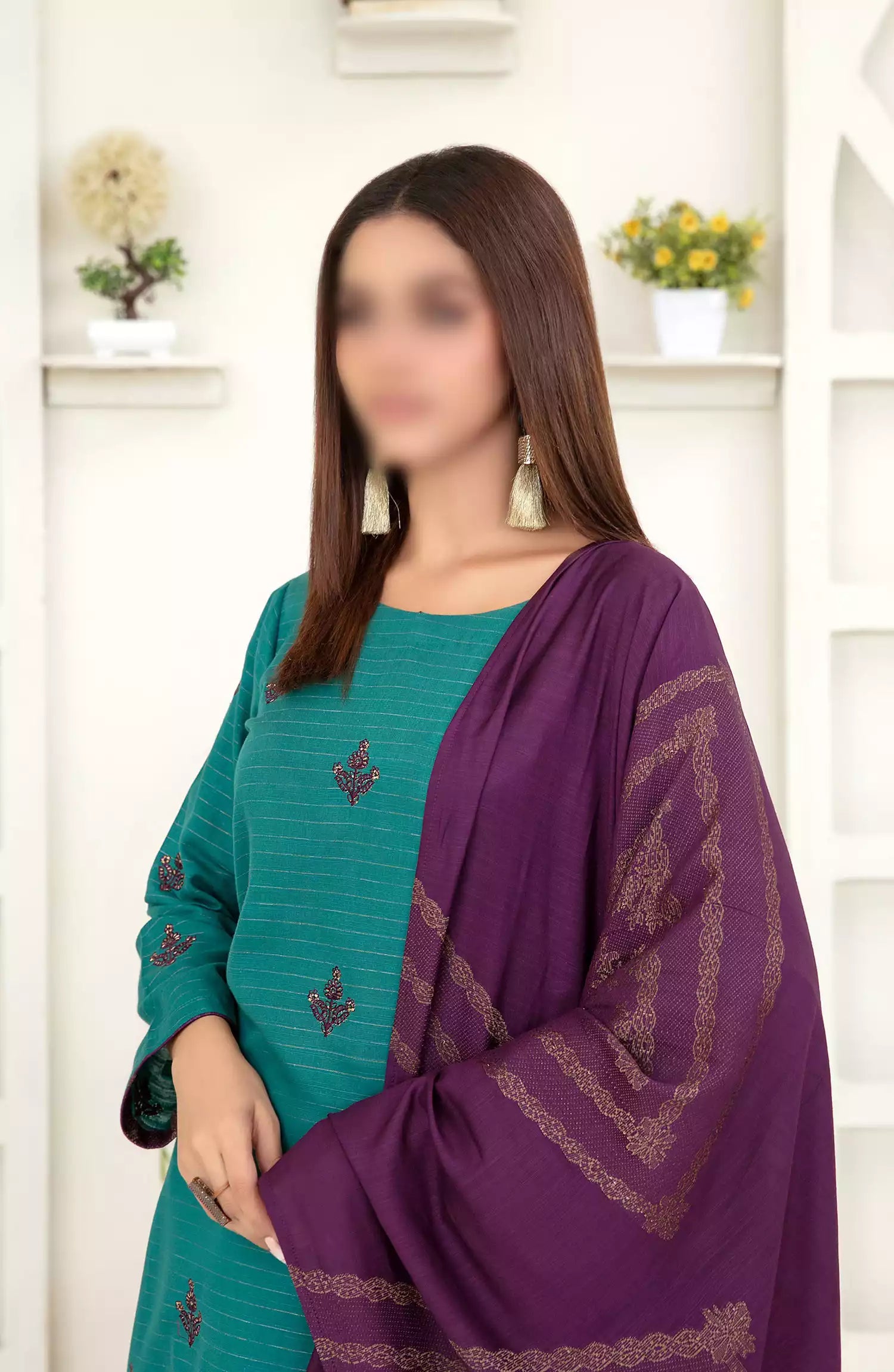 Sadabahar Printed Khaddar Stitched 3 Piece Suit - Design-04 - SBD25SHIMR - Teal - Winter Collection