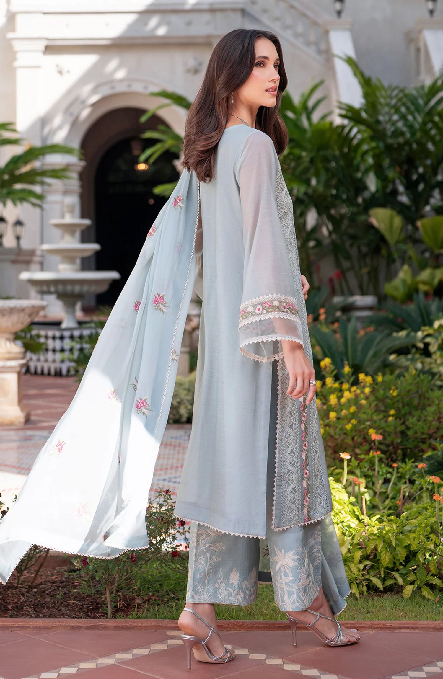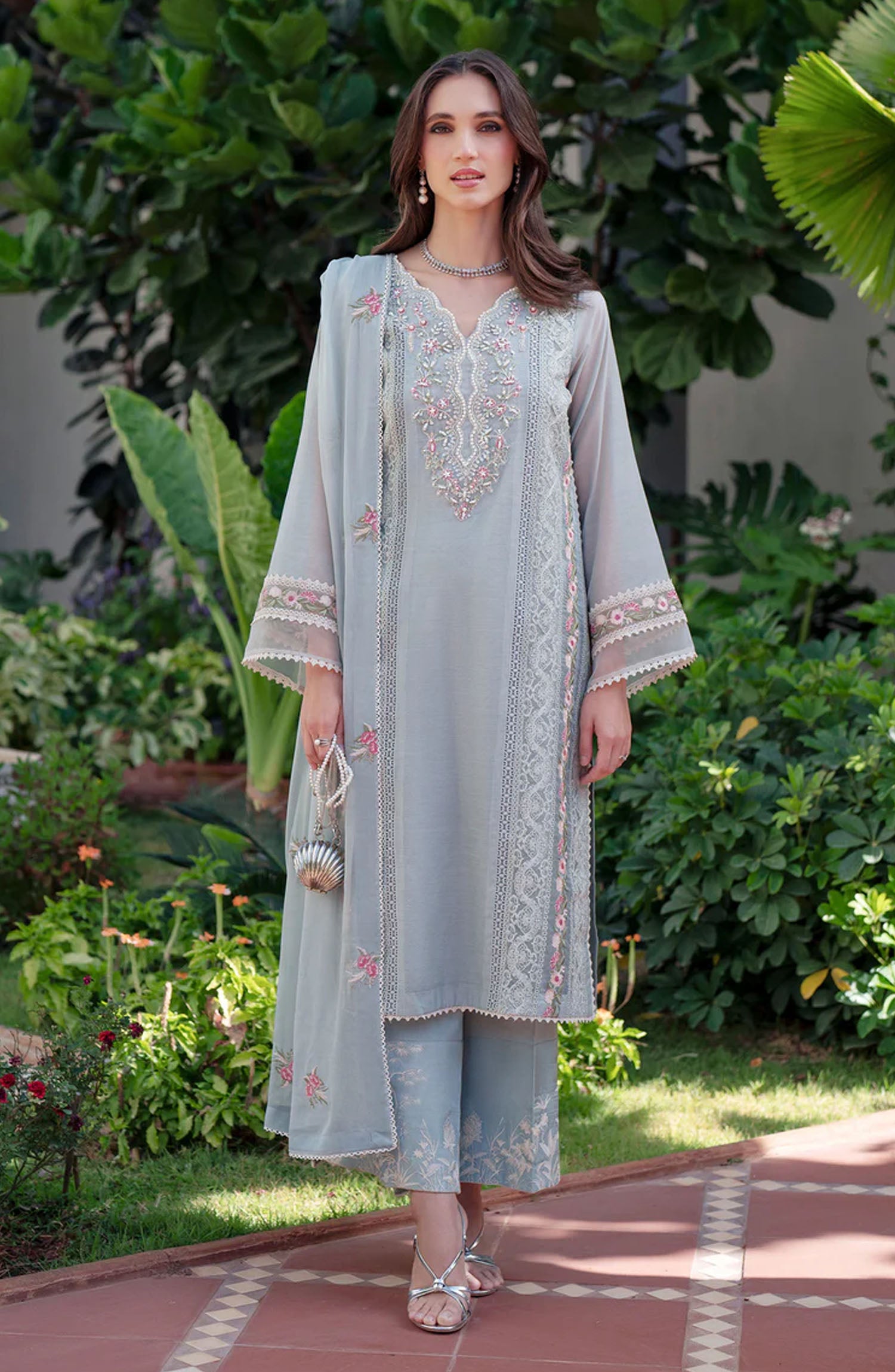 The standard style comes as a long-sleeved kameez with dupatta and trouser/shawlar.