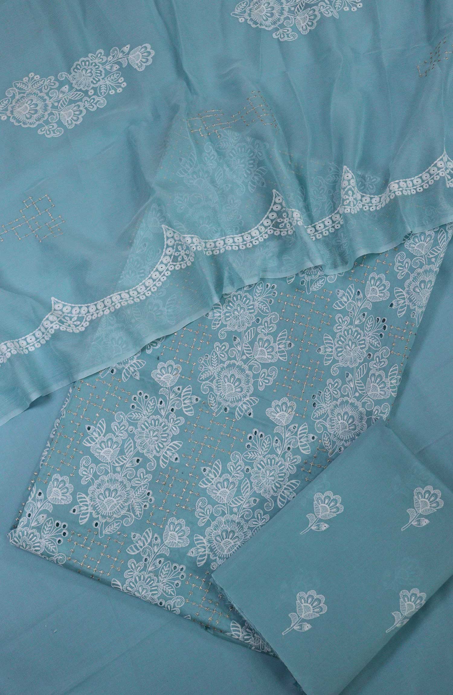 Sadabahar Festive Embroidered Viscose Stitched 3 Piece Suit - Design-03 - SBD25VSC - Ice Blue - Winter Collection