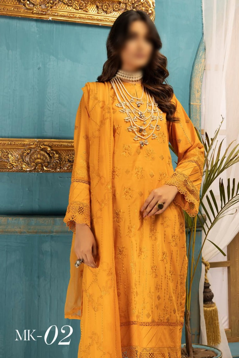 The standard style comes as a long-sleeved kameez with dupatta and trouser/shalwar.