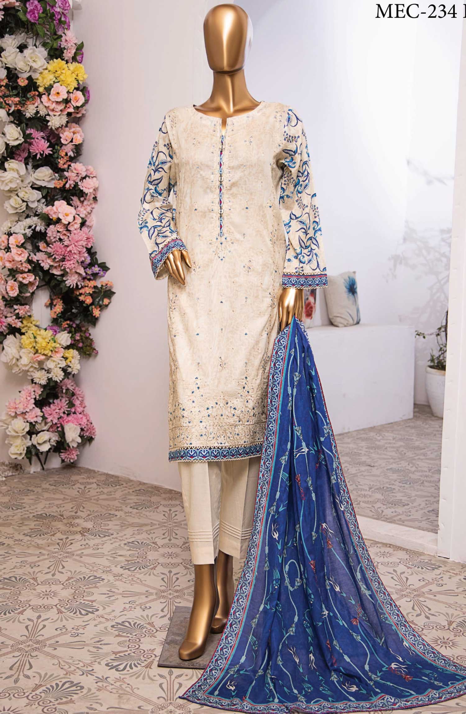 Mehek by HZ textile Embroidered Lawn Unstitched 3 Piece - MEC 234 B - HZ25M - White - Summer Collection