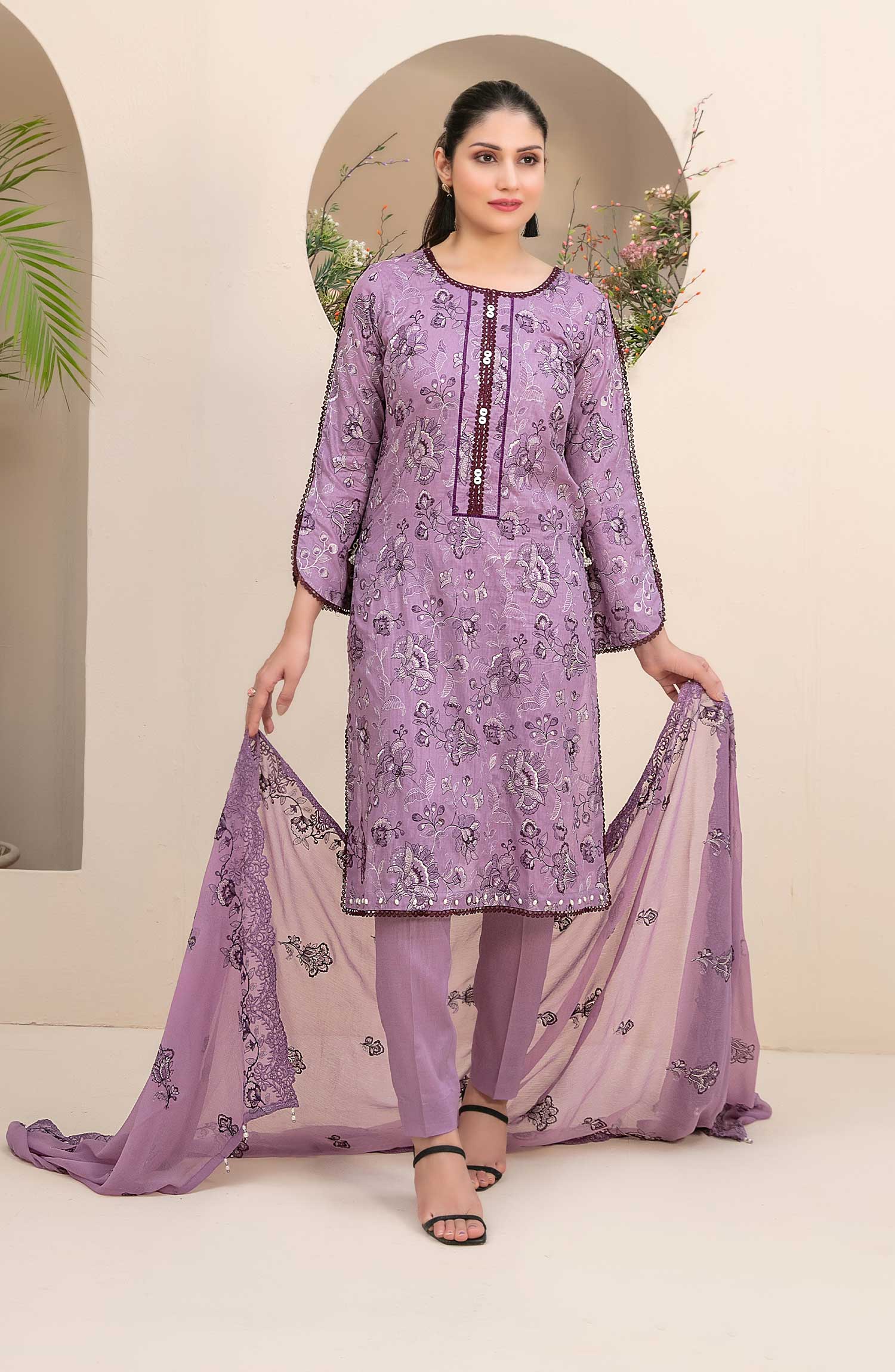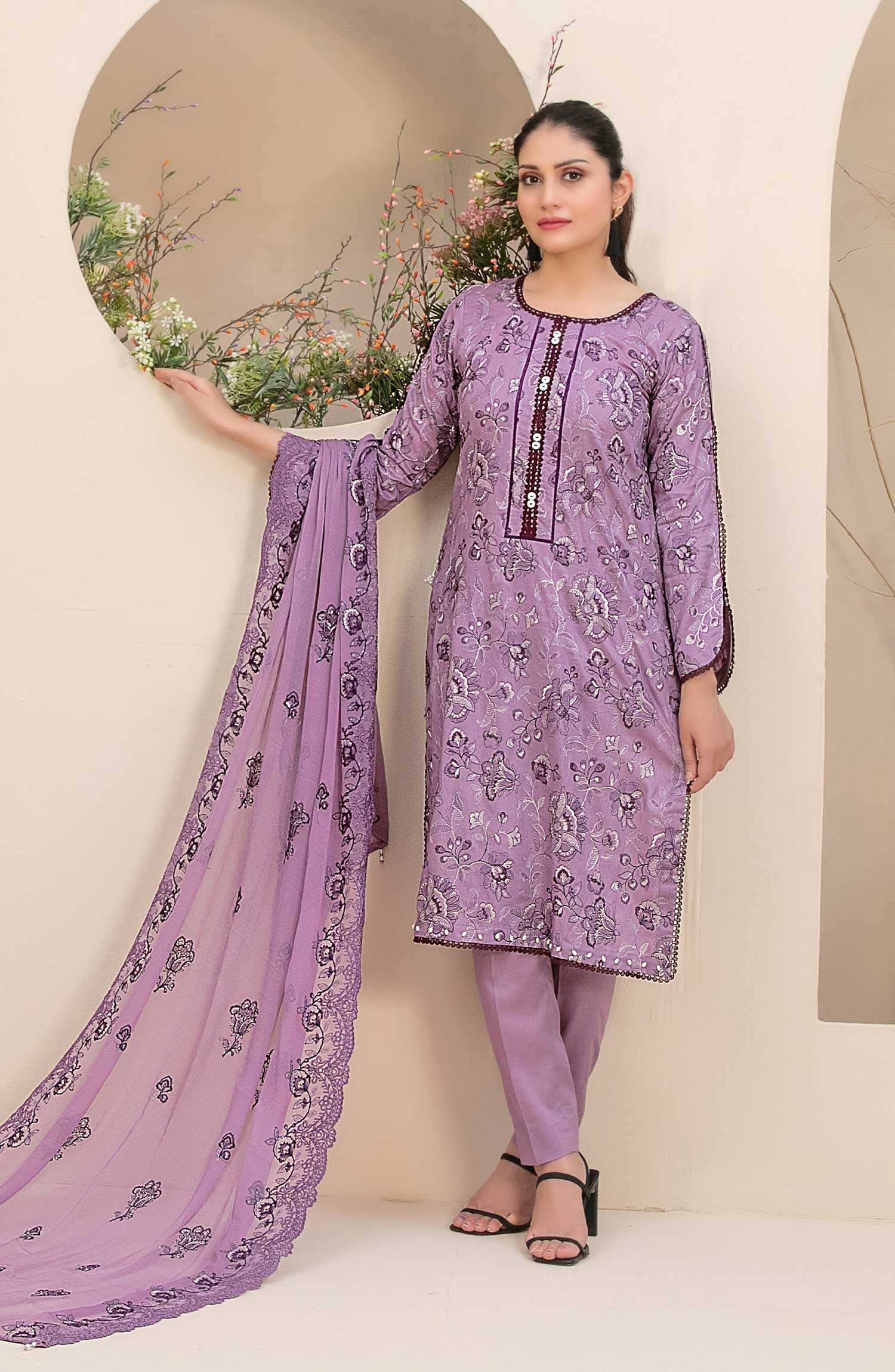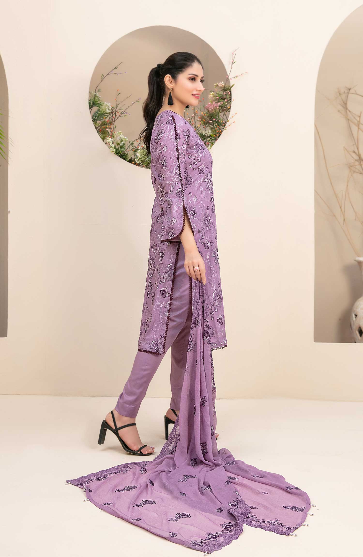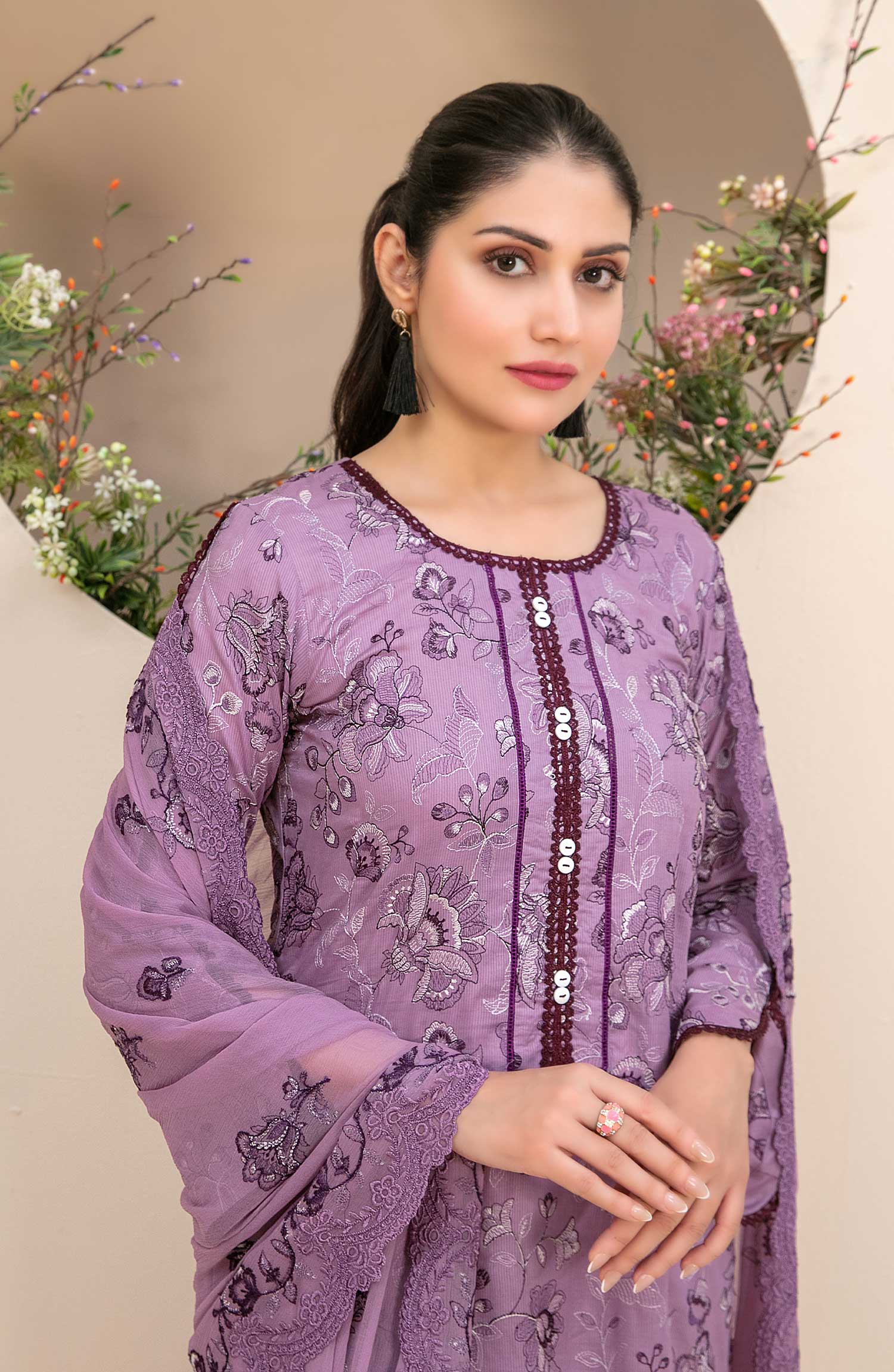 Queen Embroidered Sweet Peach Unstitched 3 Piece Suit - Design-05 - QU25SW - Purple - Winter Collection