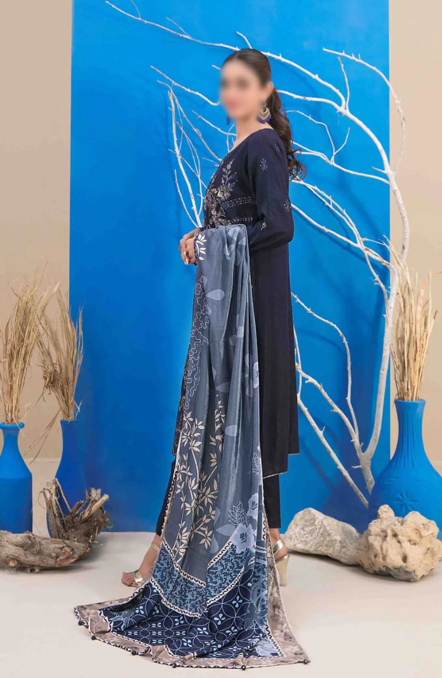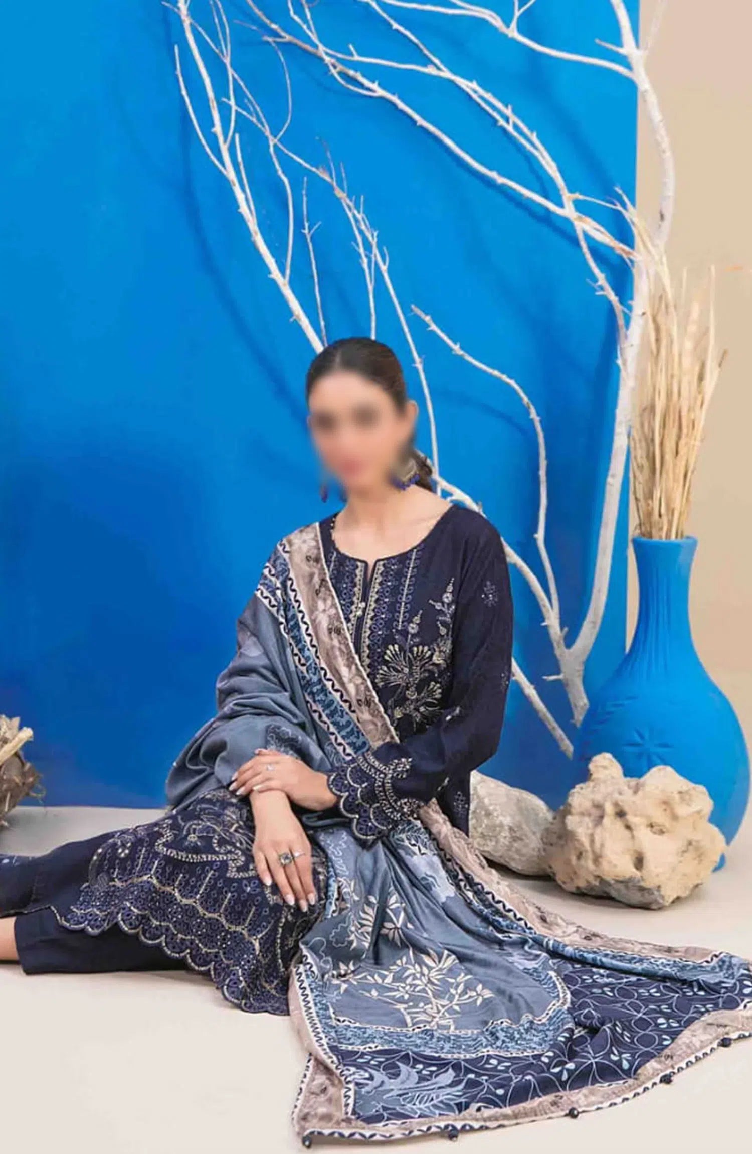 Rua by Casual Lite Embroidered Premium Linen Stitched 3 Piece Suit - D-06 Indigo Echo - CL25RU - Blue - Winter Collection