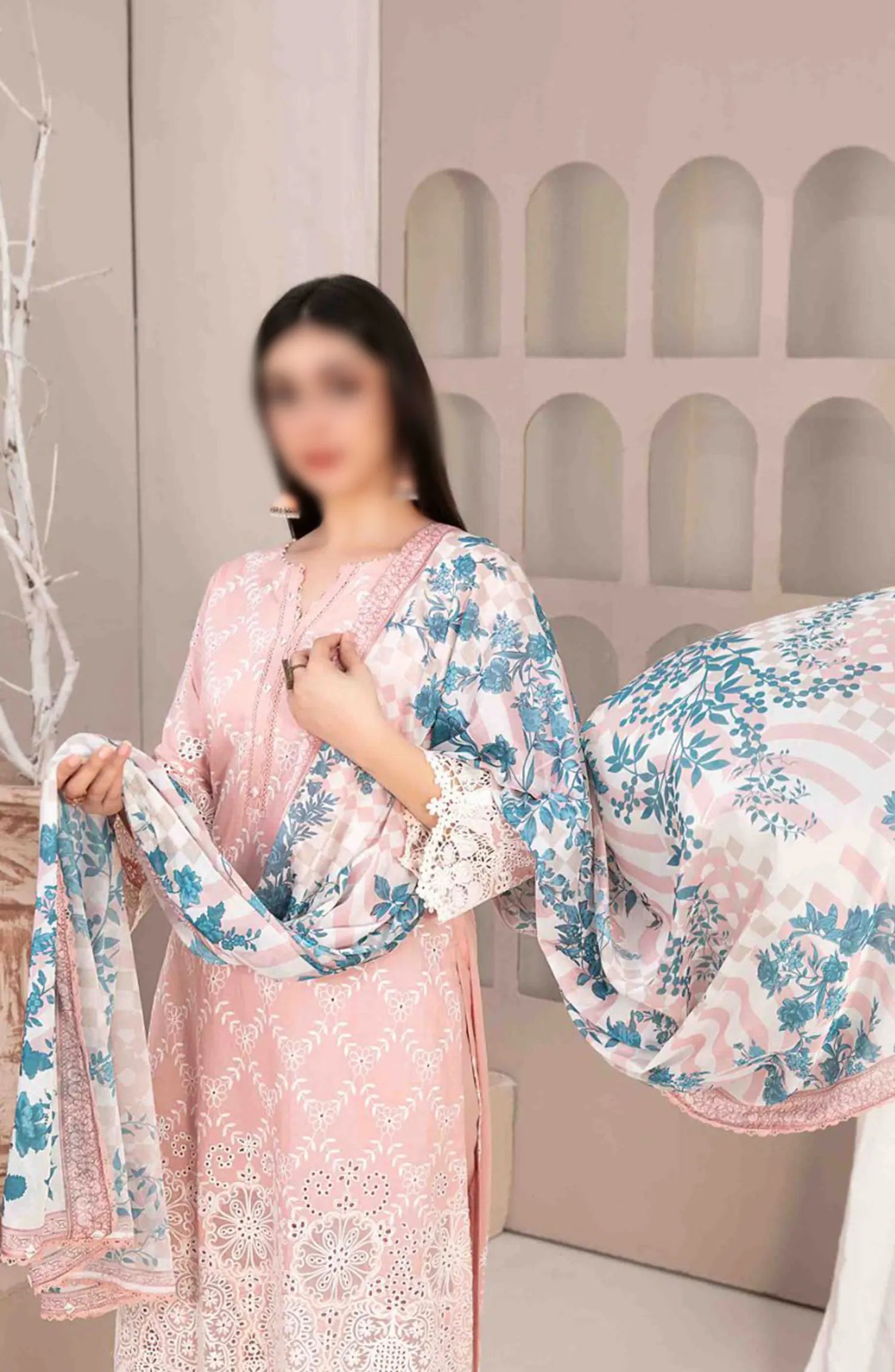 Mehri - Stitched Embroidered Lawn Collection Vol 01 has been styled in the image for photography and illustrative purposes.