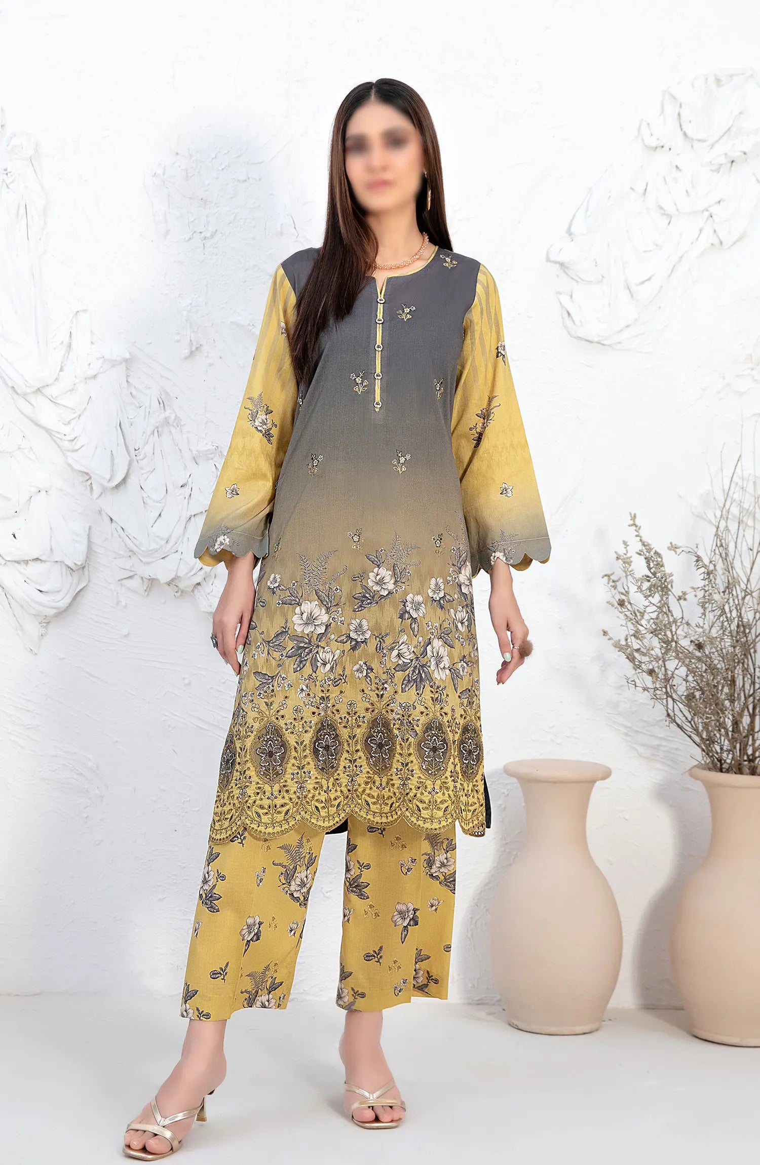 Mehrin - Laserkari Embroidered Digital Printed 2pcs Collection By Tawakkal Fabrics has been styled in the image for photography and illustrative purposes.