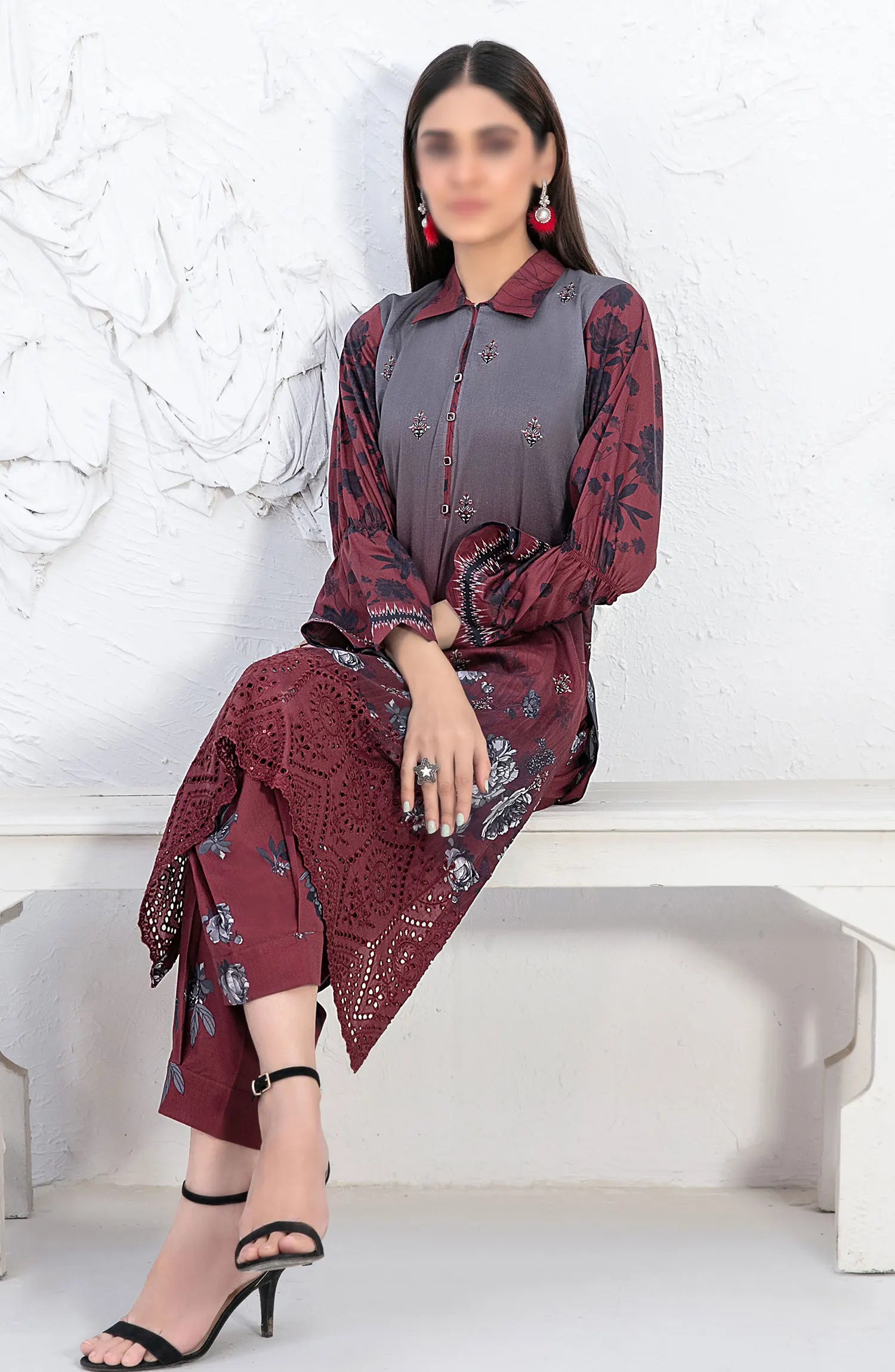 Mehrin - Laserkari Embroidered Digital Printed 2pcs Collection By Tawakkal Fabrics - D 2096